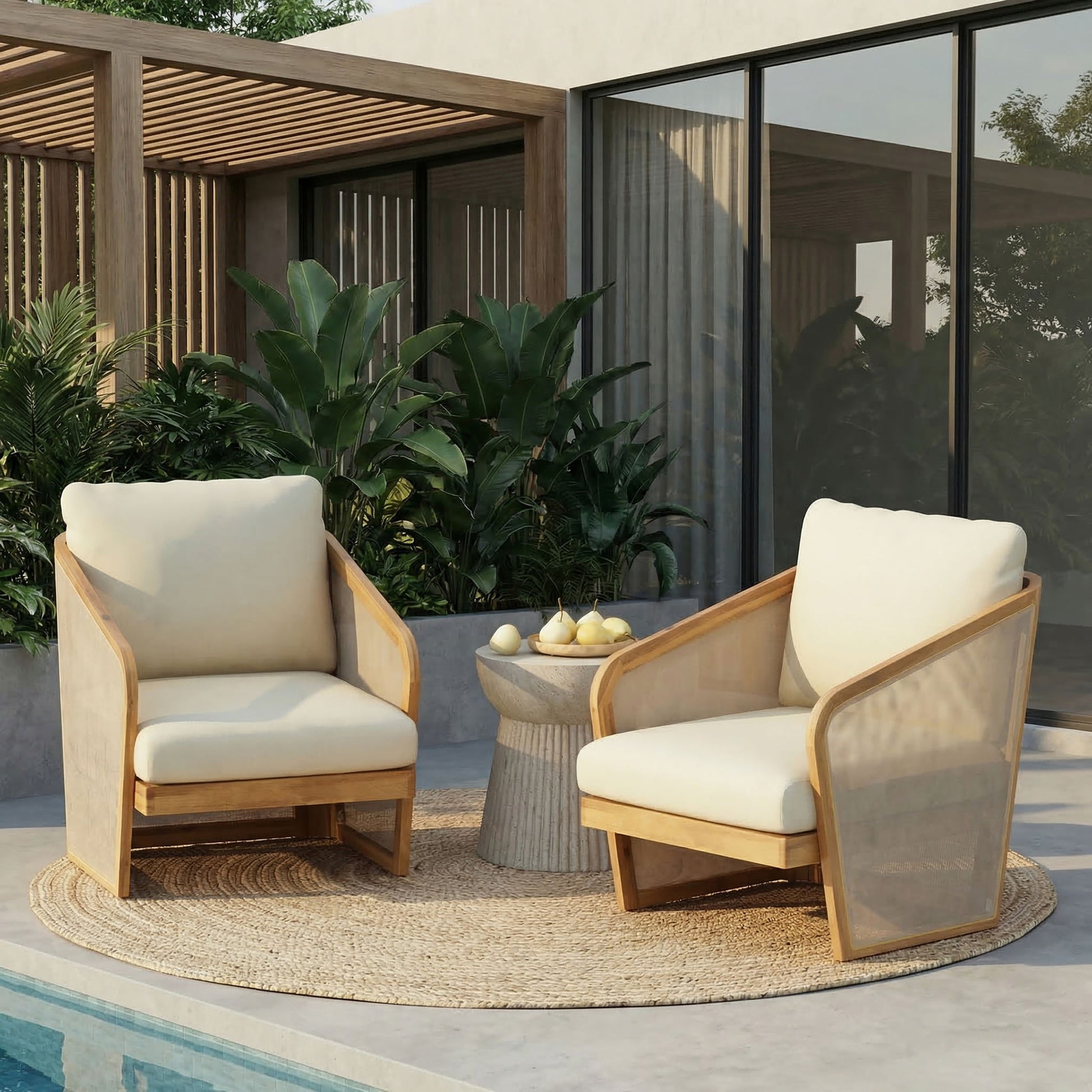 - Natural Elegance and Comfort: The patio lounge chair seamlessly combines natural elegance with modern comfort, ma it perfect for solo relaxation or hosting guests outdoors. Its deep, cushions and sturdy acacia frame enhance any patio, poolside, or garden setting.