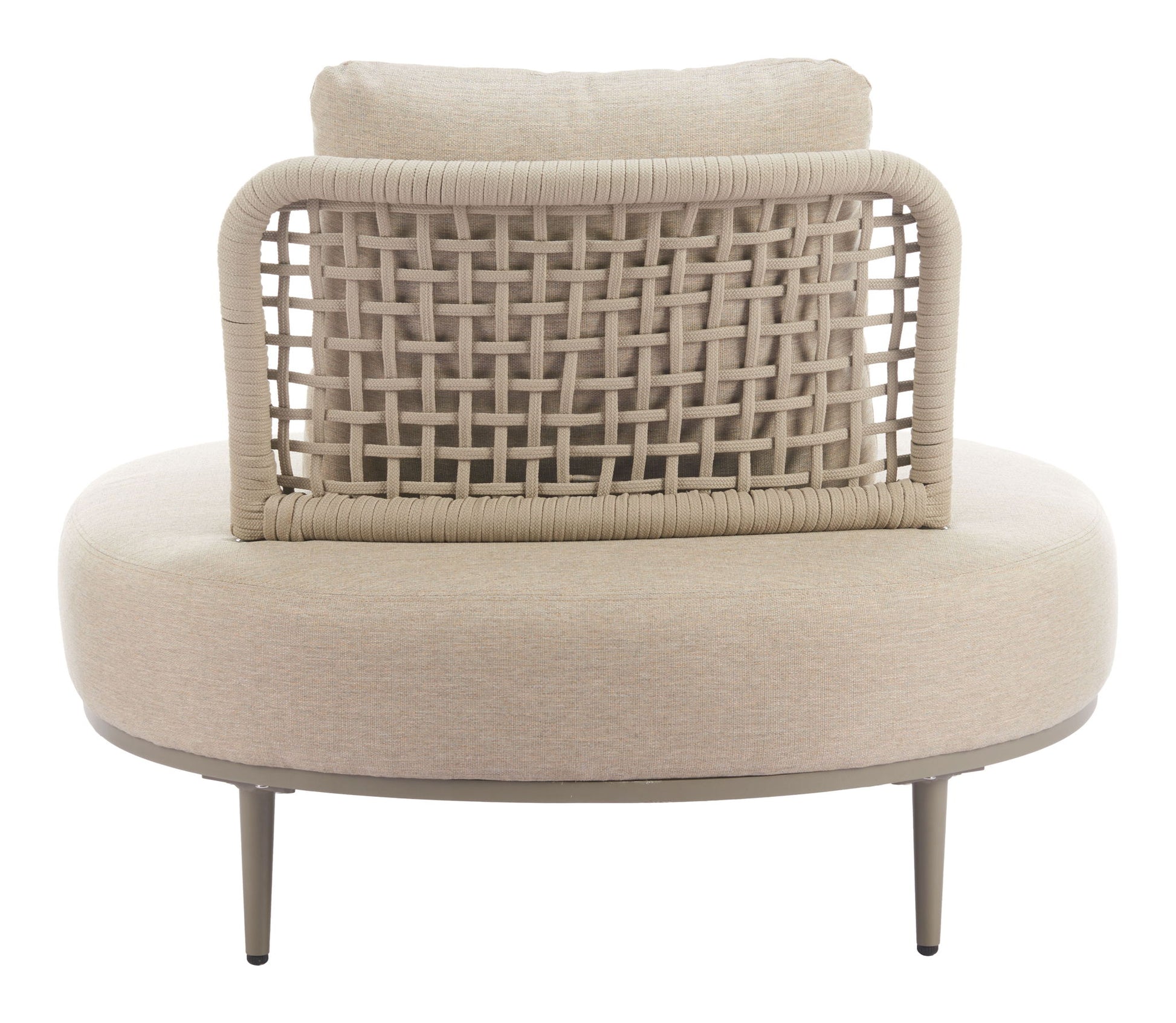 Enhance your outdoor area with the Ruhe Accent Chair Beige, a striking example of modern design. Crafted from premium Olefin, aluminum, and polyethylene, this chair perfectly combines aesthetics with practicality, making it a versatile addition to patios, porches, or gardens. Its chic and contemporary design ensures it stands out, elevating the style of any outdoor setting.