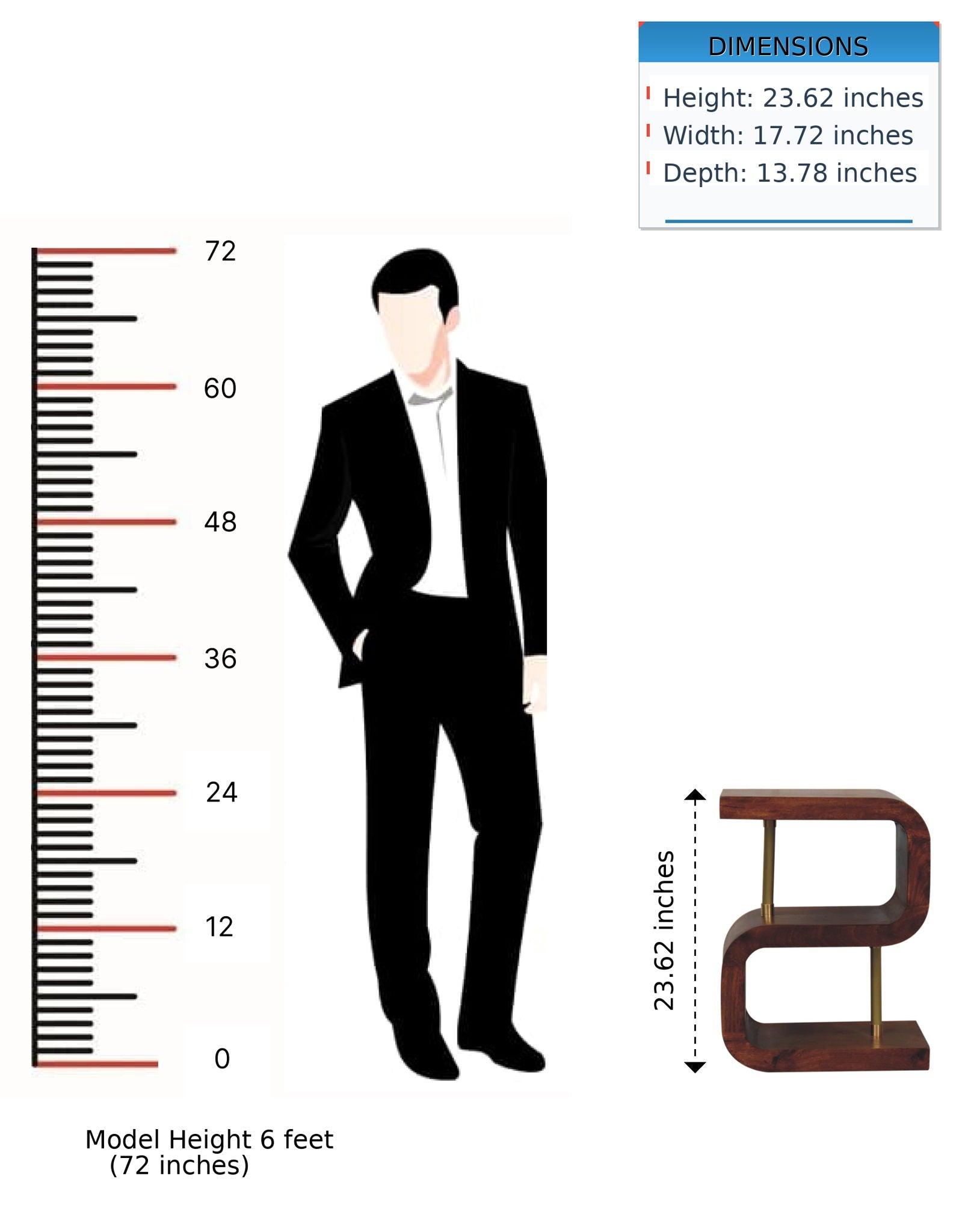 - Artisan Furniture Solid Wood S-curve Brass Bedside - This uniquely designed end table has been constructed from 100% solid mango wood in a chestnut finish. The divided design allows you to place or display items on the top middle or bottom shelf. It has 2 brass bars dividing the piece and giving it extra character. It can be used in the living room or hallway and paired with different styles of furniture in the home.