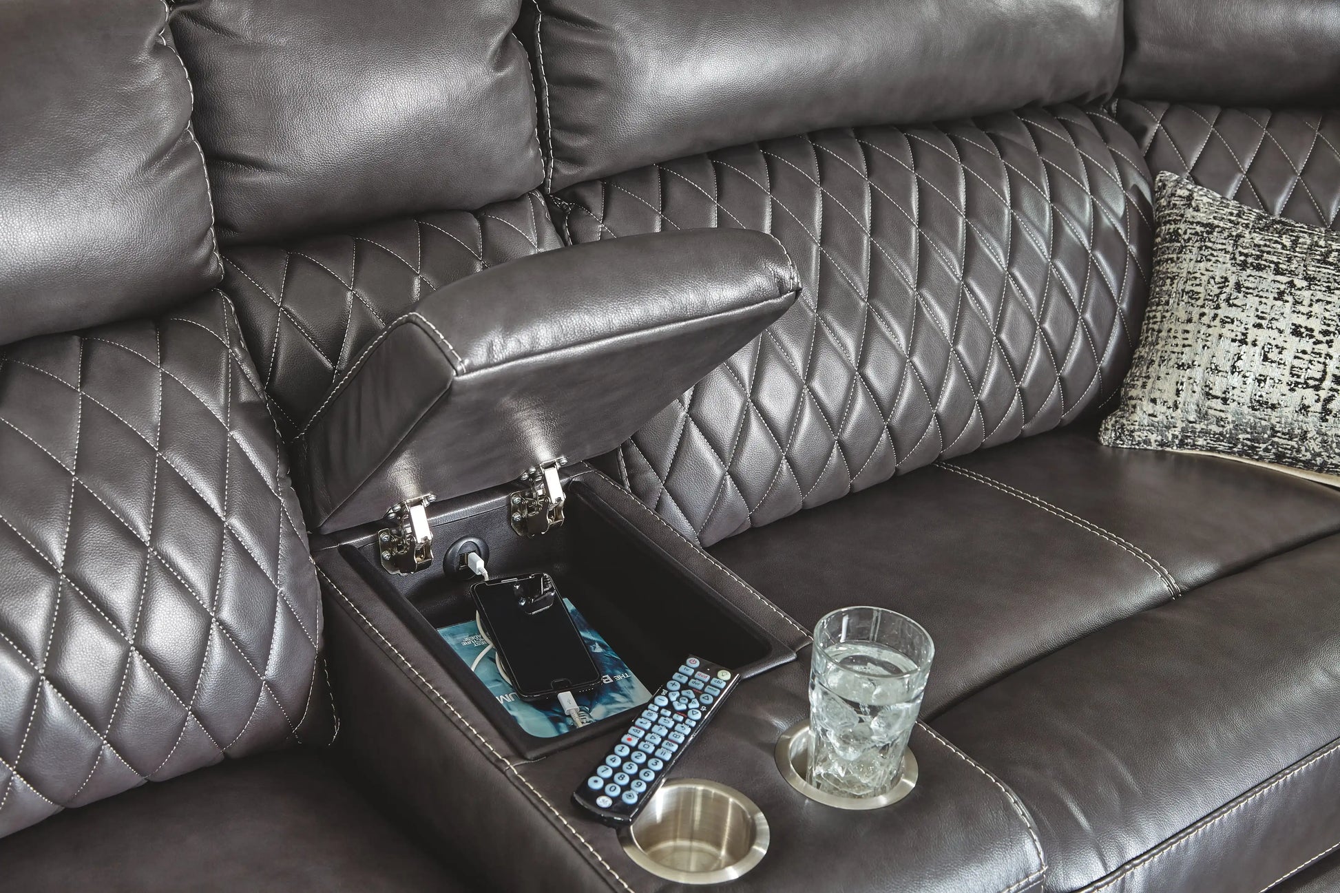 Samperstone - Power Reclining Loveseat With Console 3 Pc Sectional - Gray