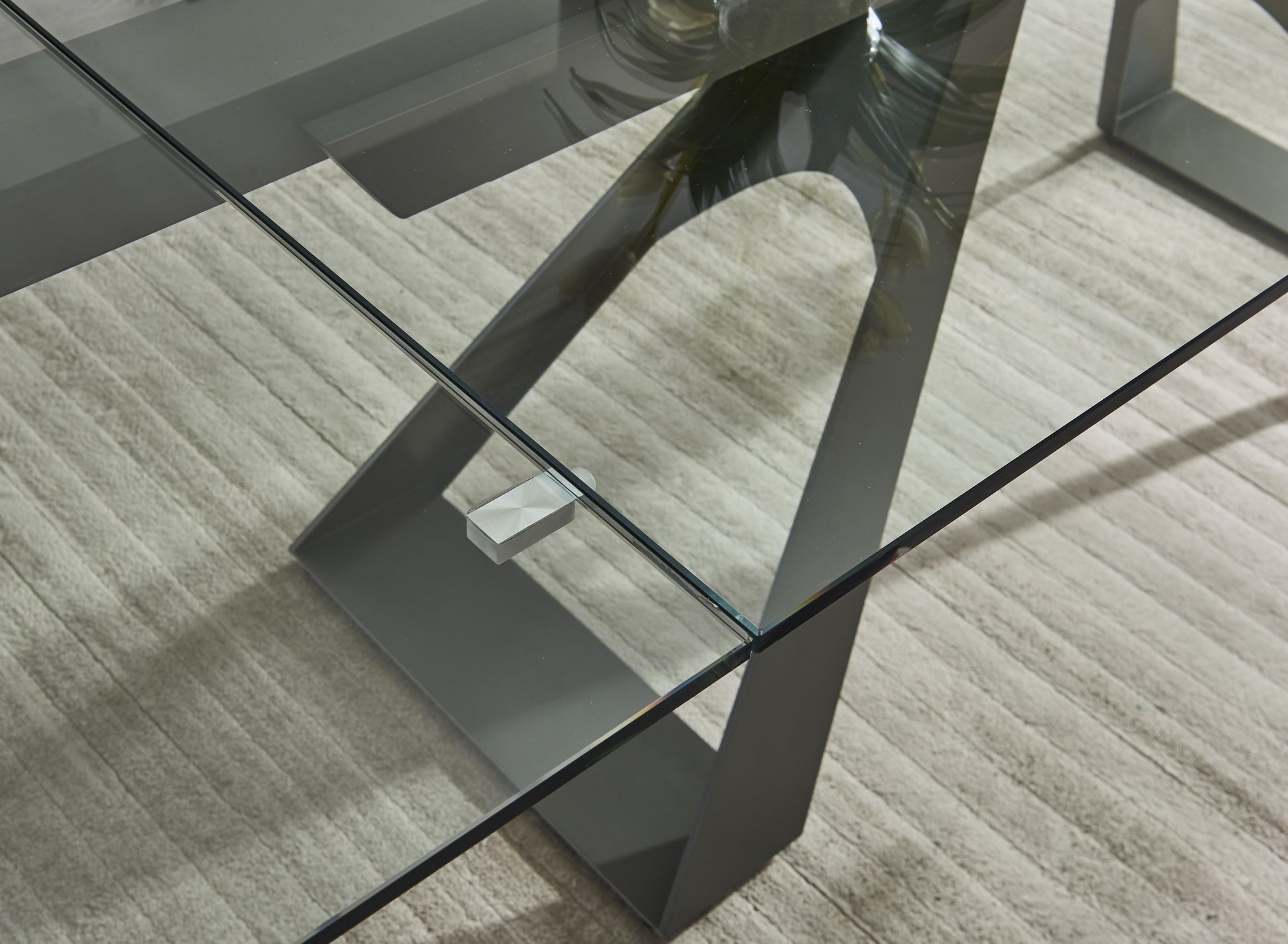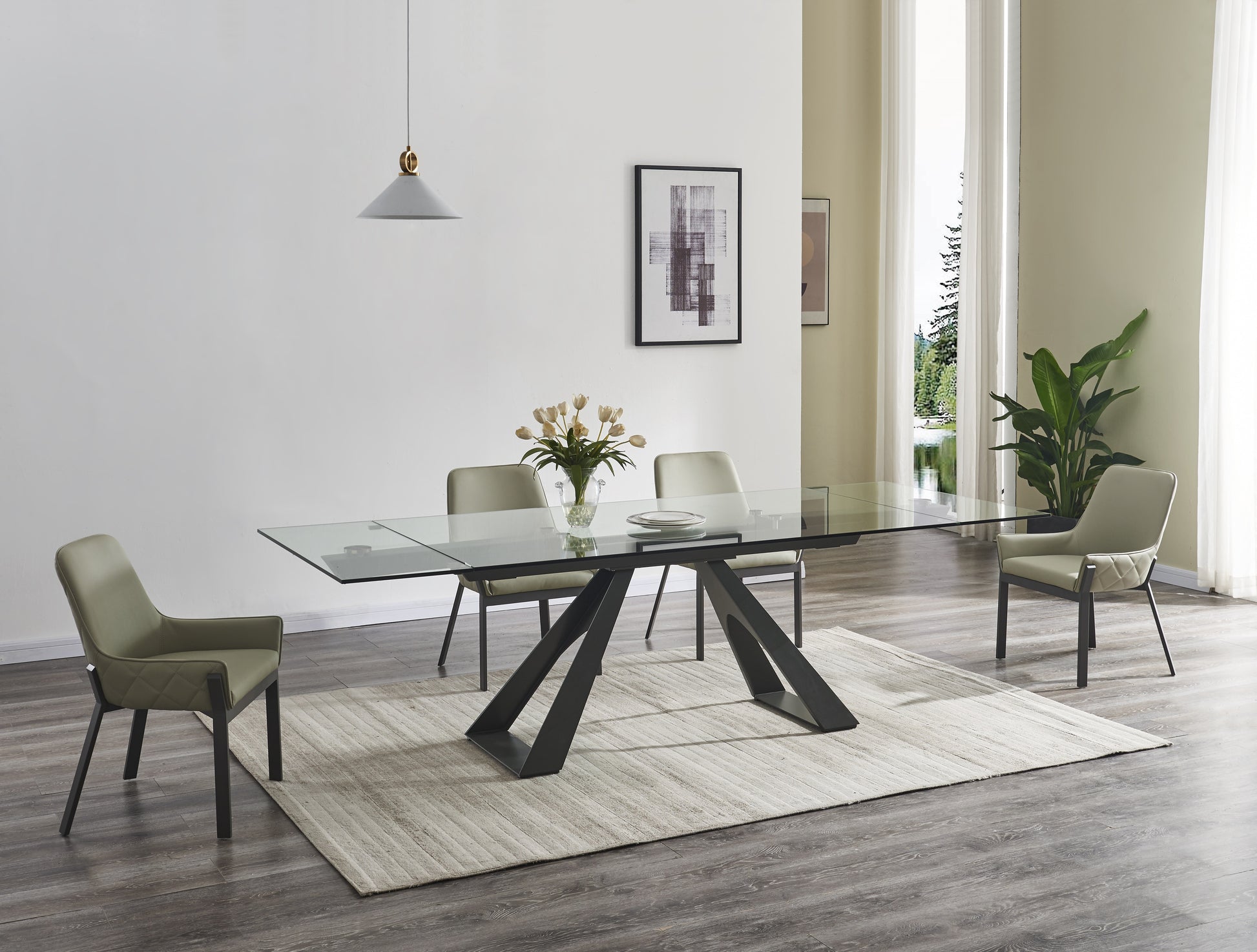 The J&M San Diego Extension Dining Table is the epitome of sleek modern design and functional elegance. Thoughtfully crafted to adapt to your dining needs, this contemporary centerpiece features a tempered glass top that adds a touch of sophistication and visual lightness to any space.