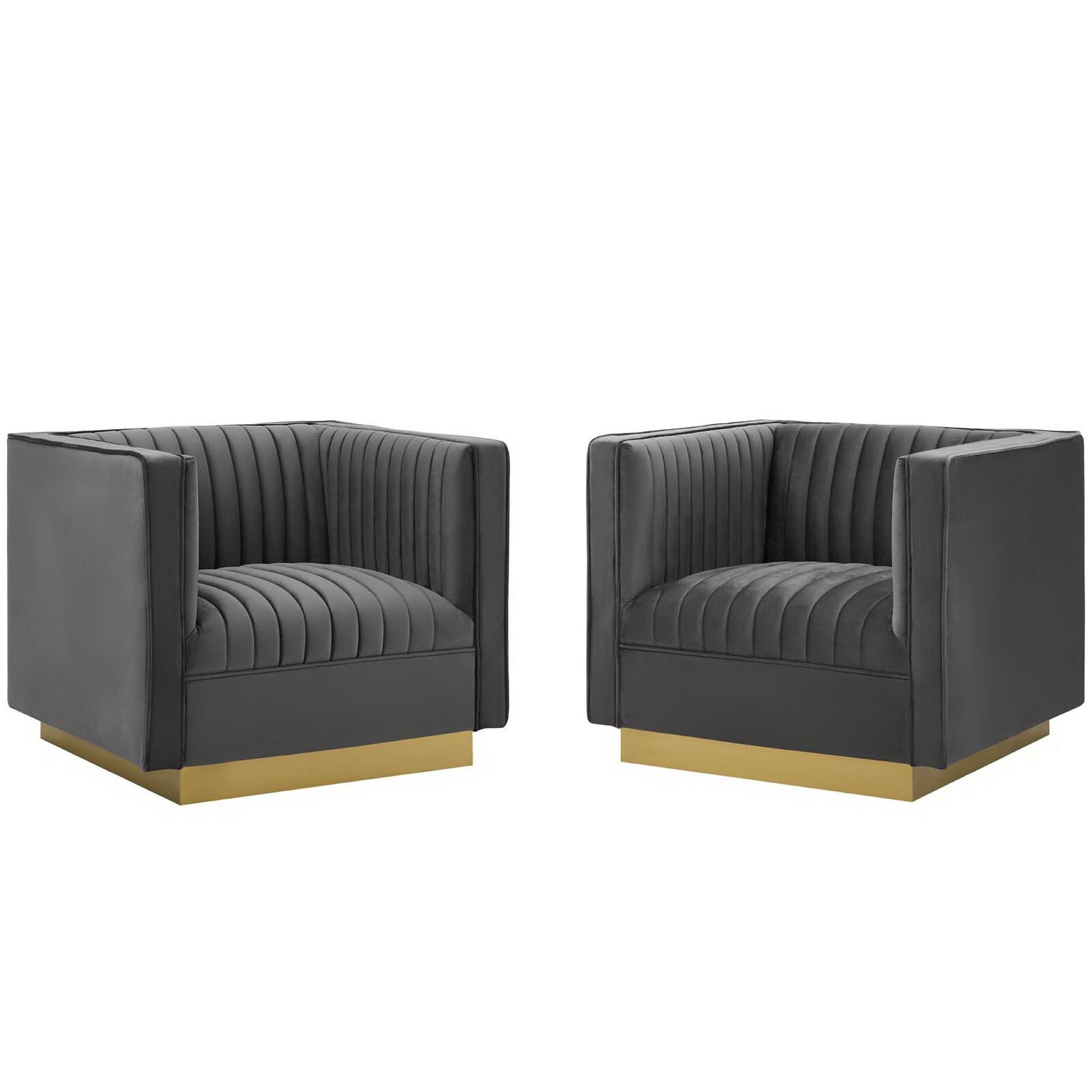 Sanguine Vertical Channel Tufted Upholstered Performance Velvet Armchair Set of 2 by Modway