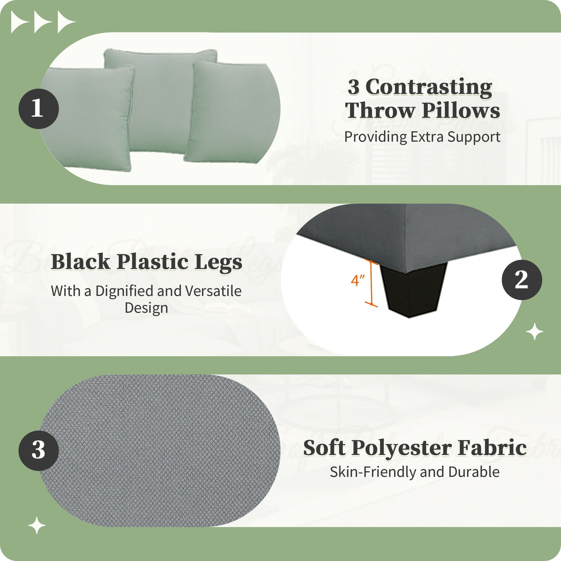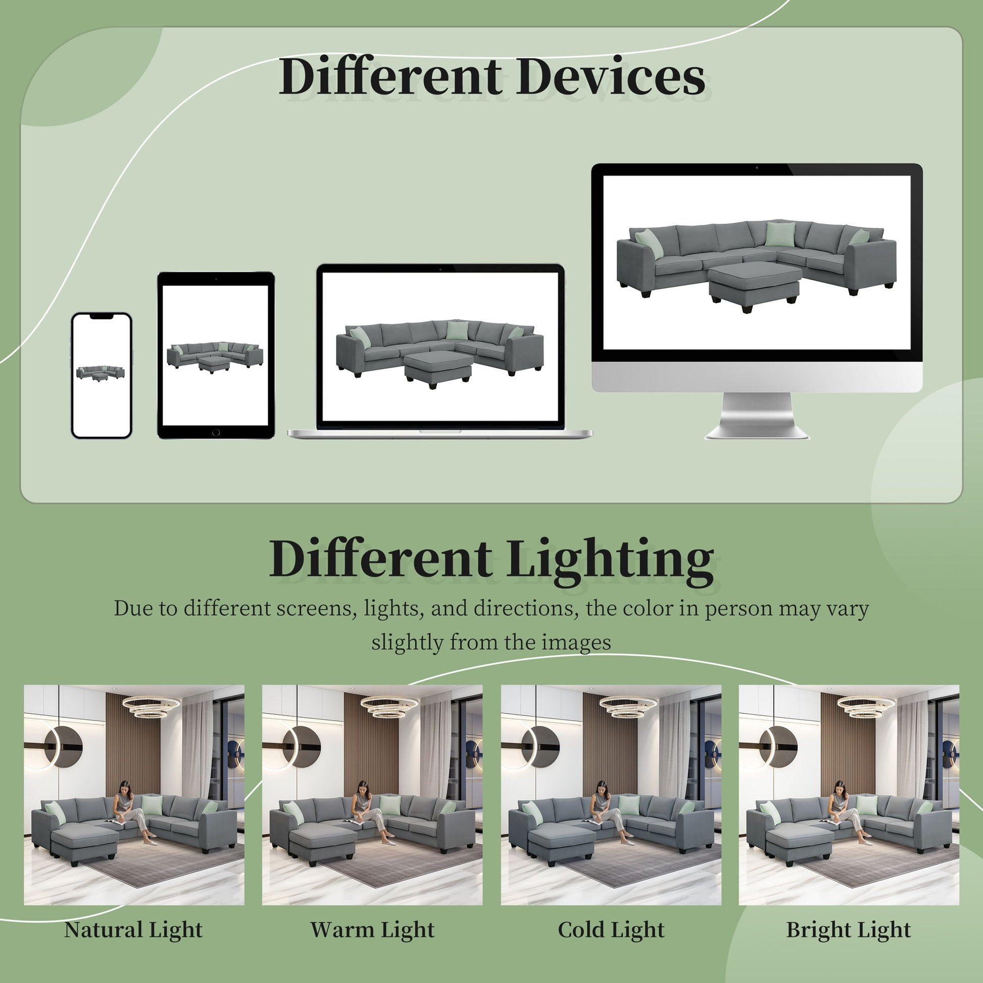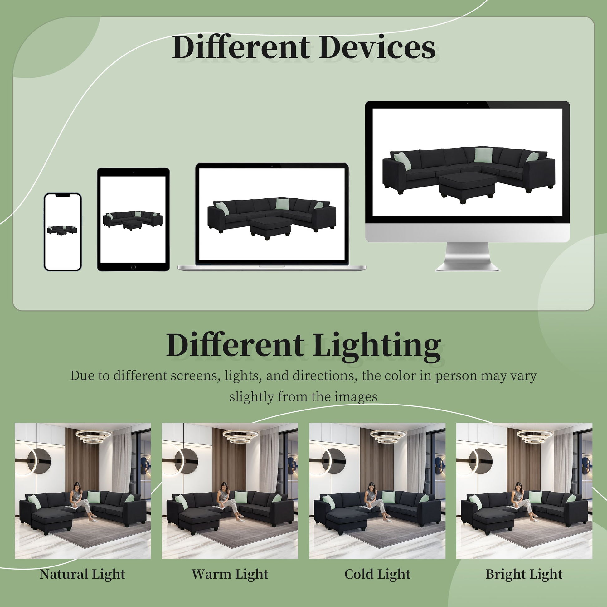 - Versatile Color Options: This sectional sofa comes in 2 colors to match different settings. It includes left and right arm-facing 3-seaters, a removable ottoman, and 3 pillows for added comfort.