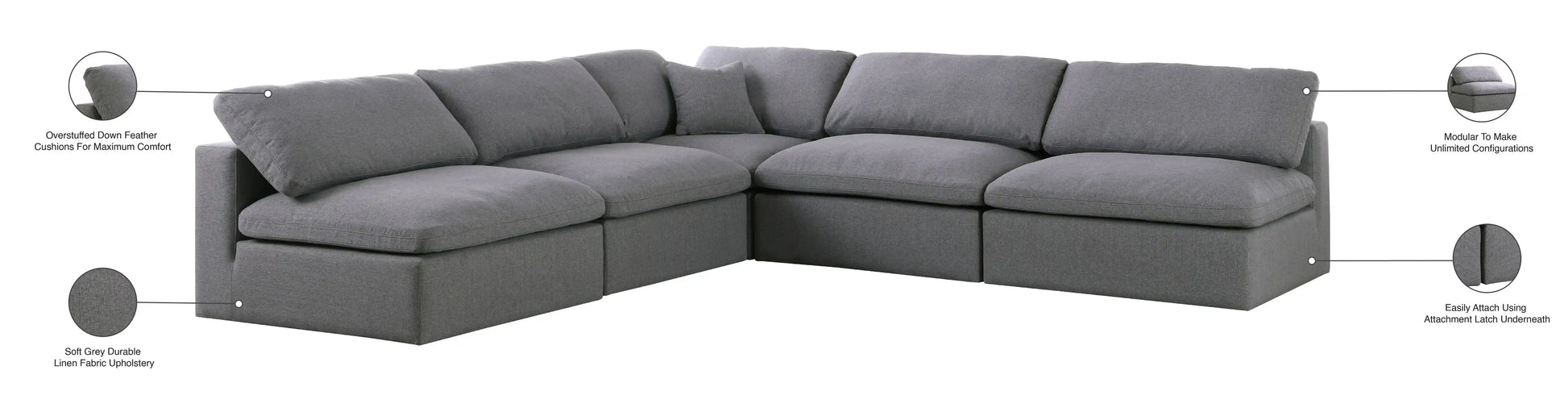 Serene - 5 Piece Modular Corner Sectional - Gray