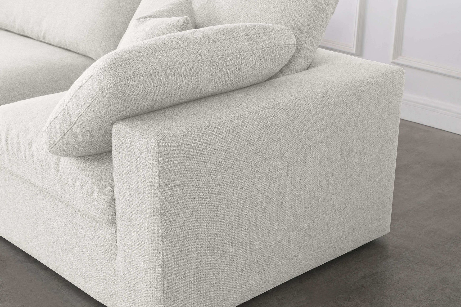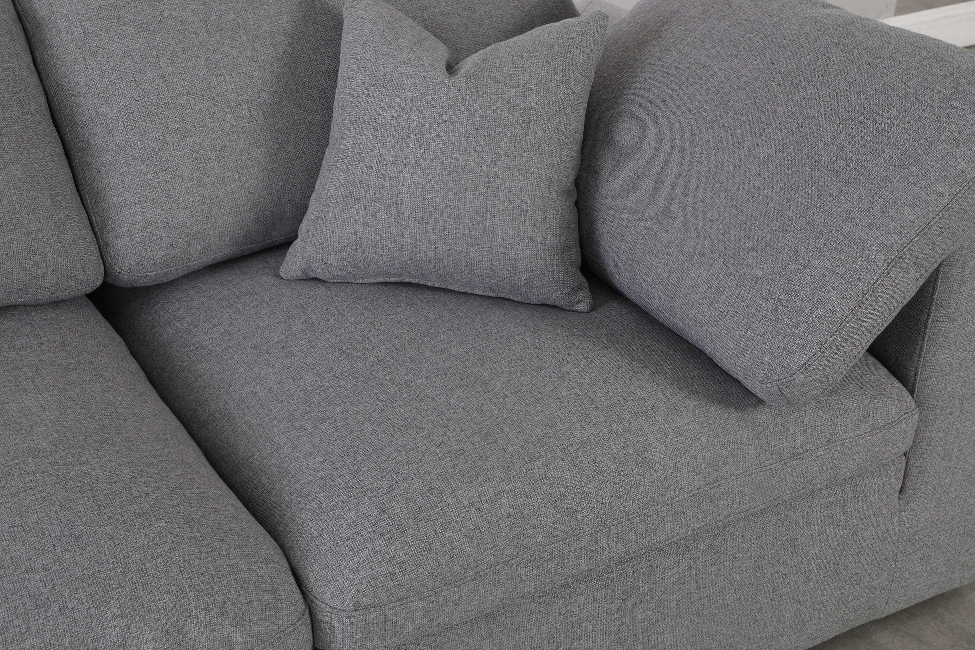 There's lots to love about the Serene linen textured deluxe cloud-like comfort modular collection, and this piece is not an exception. The soft linen textured fabric is cozy and sleek to the touch while the overstuffed down/feather cushions provide gentle support so you can relax and unwind like a VIP. Customize your seating with this modular set by adding the pieces you like most. Latches under each piece make it easy to snap them into position for a look that's modern yet welcoming.