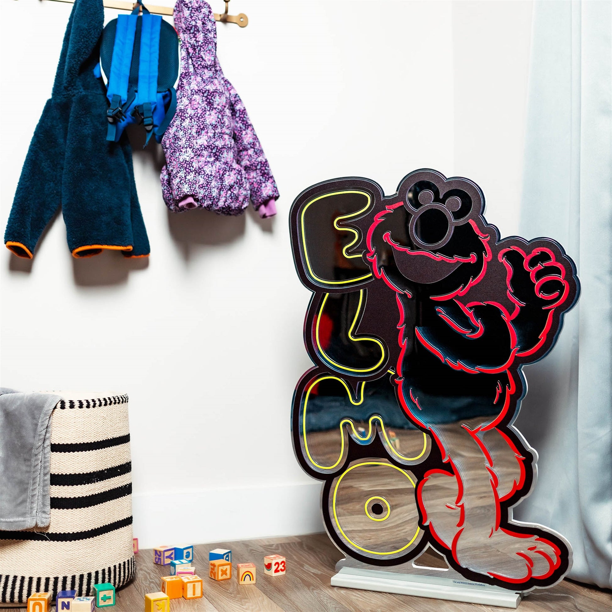 Bring joy, energy, and a touch of whimsy to any space with the Sesame Street Elmo Ekkolight! Featuring beloved friend Elmo standing beside a playful, colorful letter stack that spells out his name, this LED light shines in bright red and orange tones, spreading happiness wherever it glows. Perfect for kids' rooms, play spaces, or family holiday décor, this playful and heartwarming design is sure to brighten up your decor spaces. Created in colaboration with Sesame Street, let Elmo brighten up your space with his big smile and boundless energy!