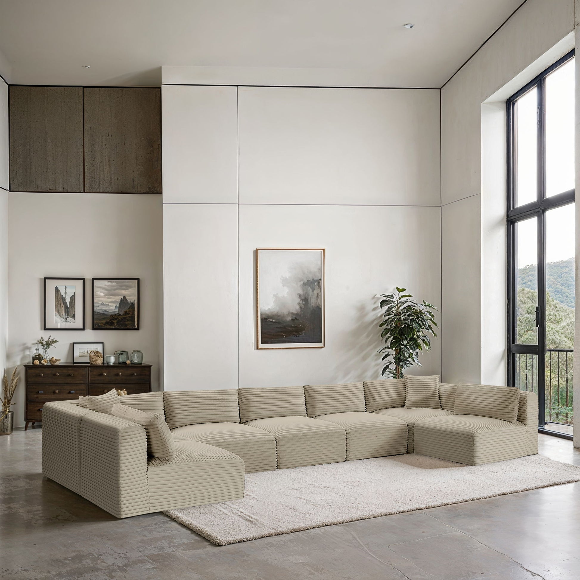 Shaggy - 7 Piece Modular U-Shaped Armless Sectional - Cream