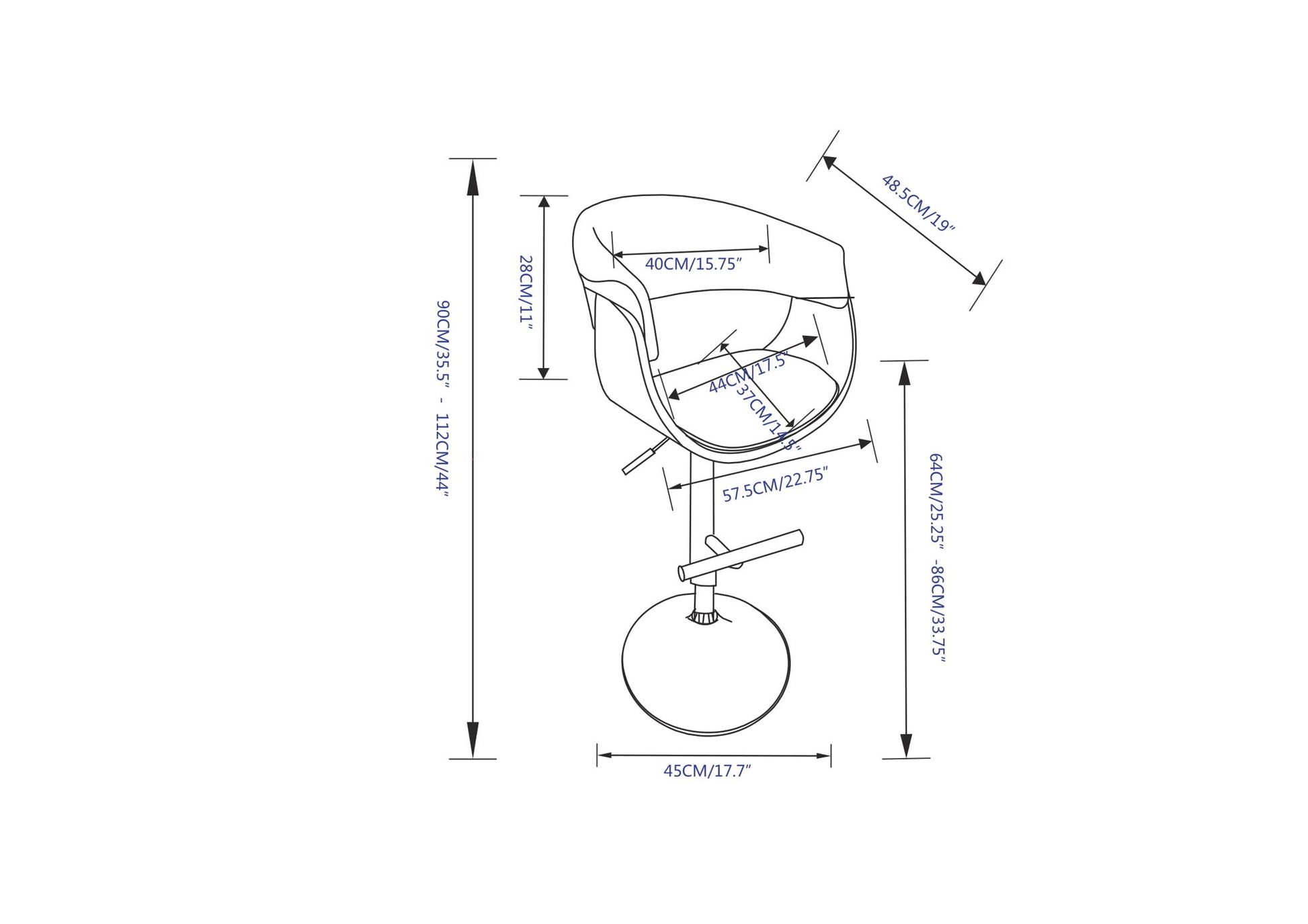 - Dimensions: 18.5" D x 23.8" W x 35.75-44"H