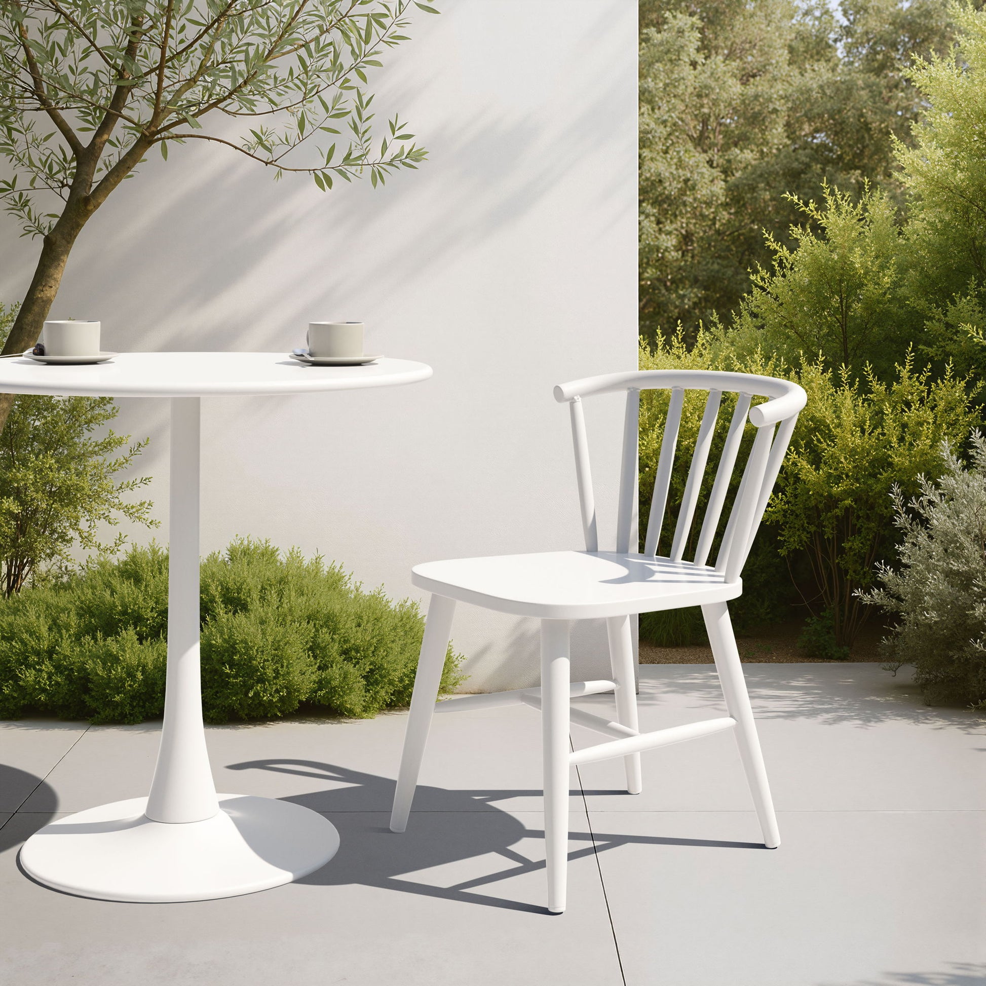 The Shio Dining Chair has a fully powder coated aluminum frame with a matte finish. This fully welded design brings a modern and durable construction to a classic shape. Outdoor or indoor, this chair works well in any dining room or café.