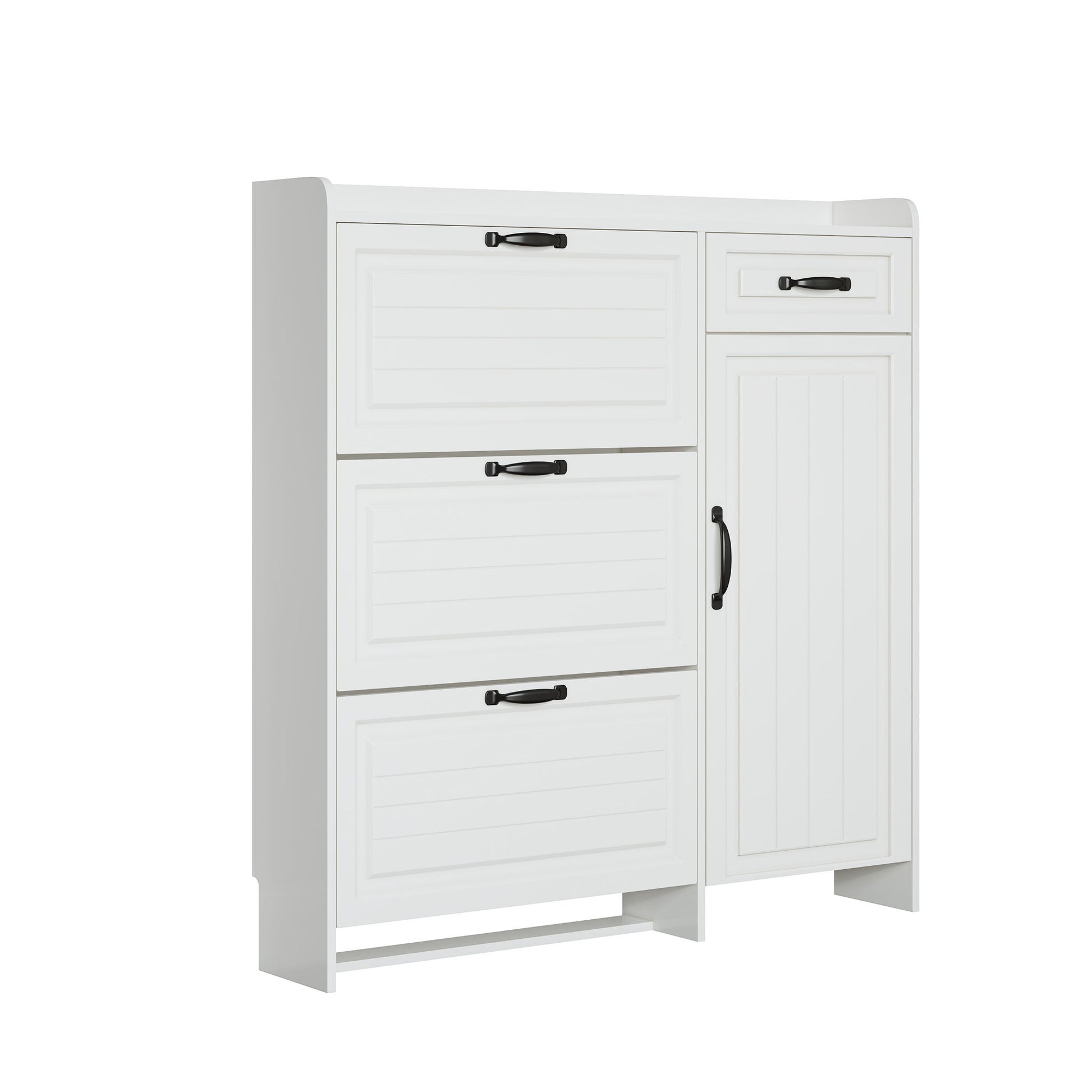 Shoe Cabinet With 4 Doors 1 Drawers, PVC Door With Shape, Large Space For Storage - White