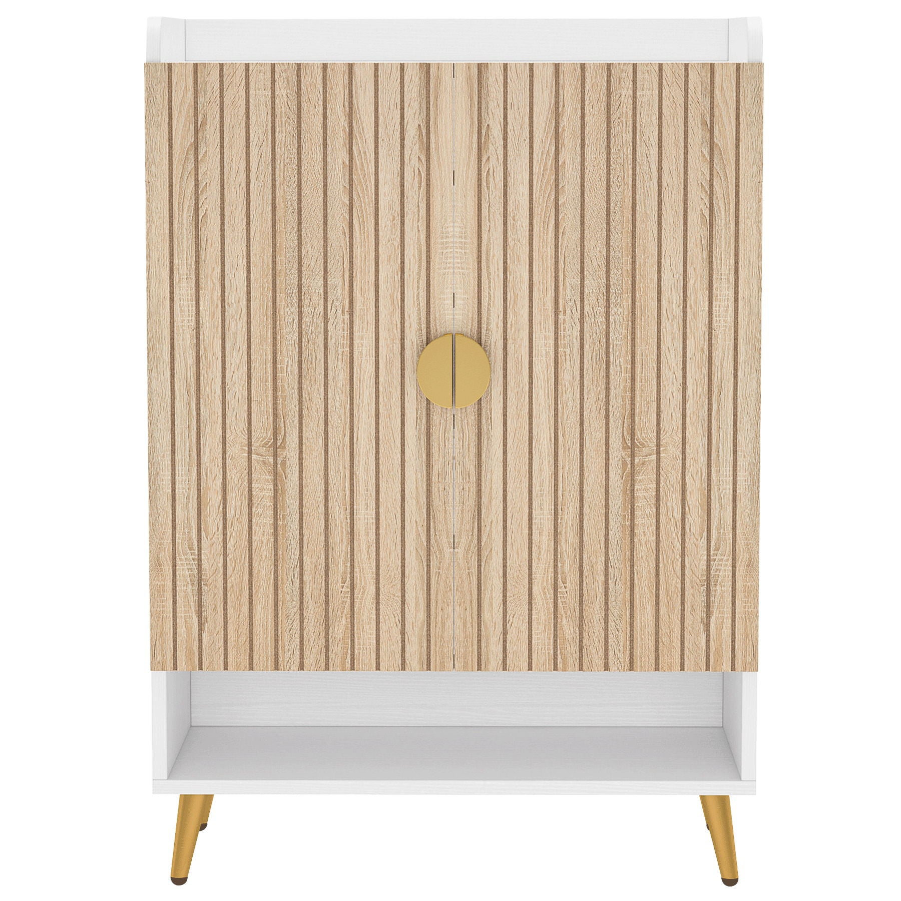 Shoe Cabinet With Doors, 7 Tier Storage Organizer - White / Natural