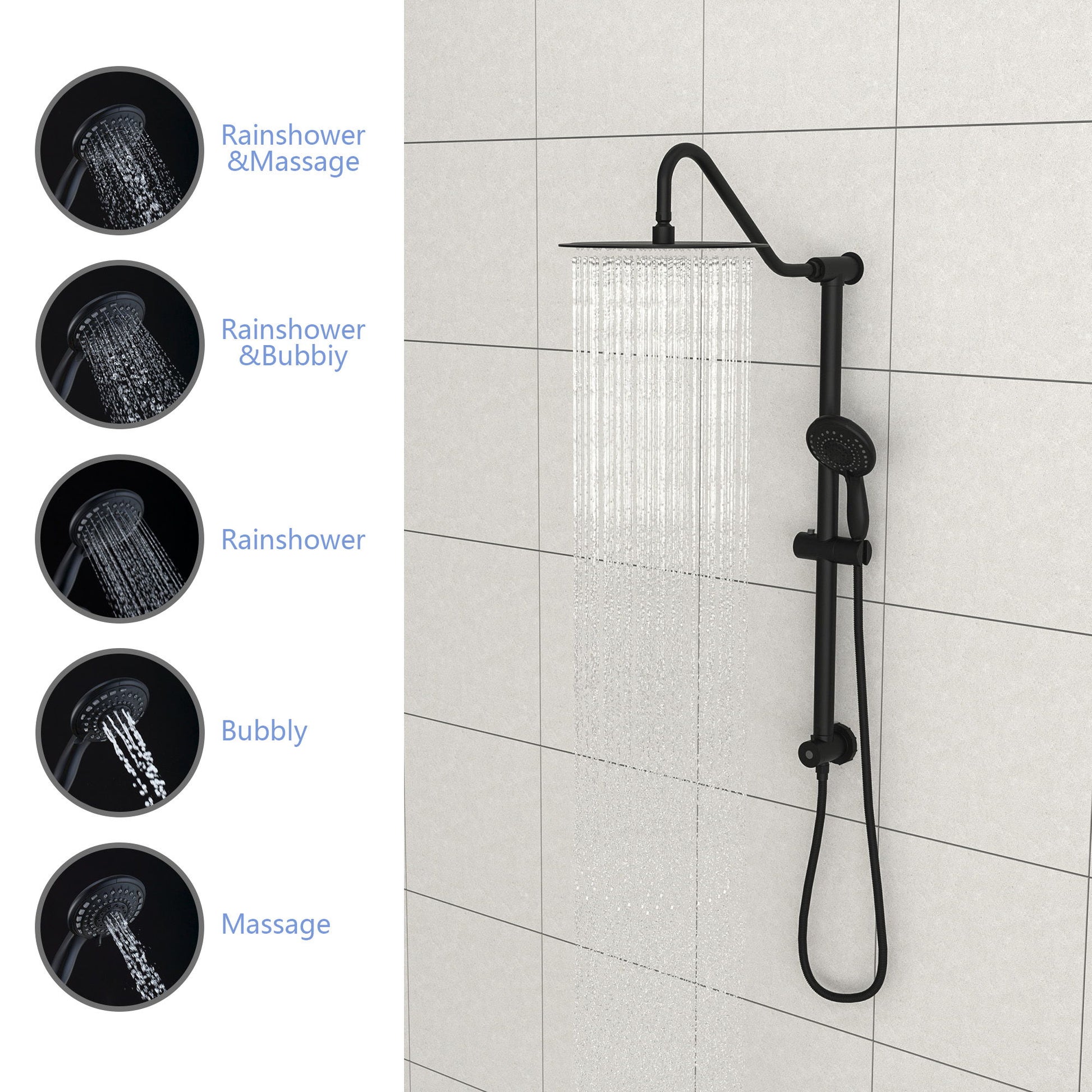 Shower System With 5 Function Rain Hand Shower And Slide Bar Combo - Matte Black