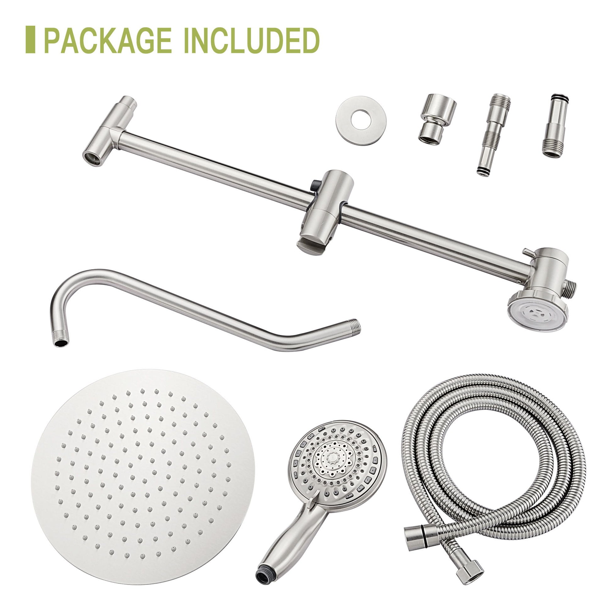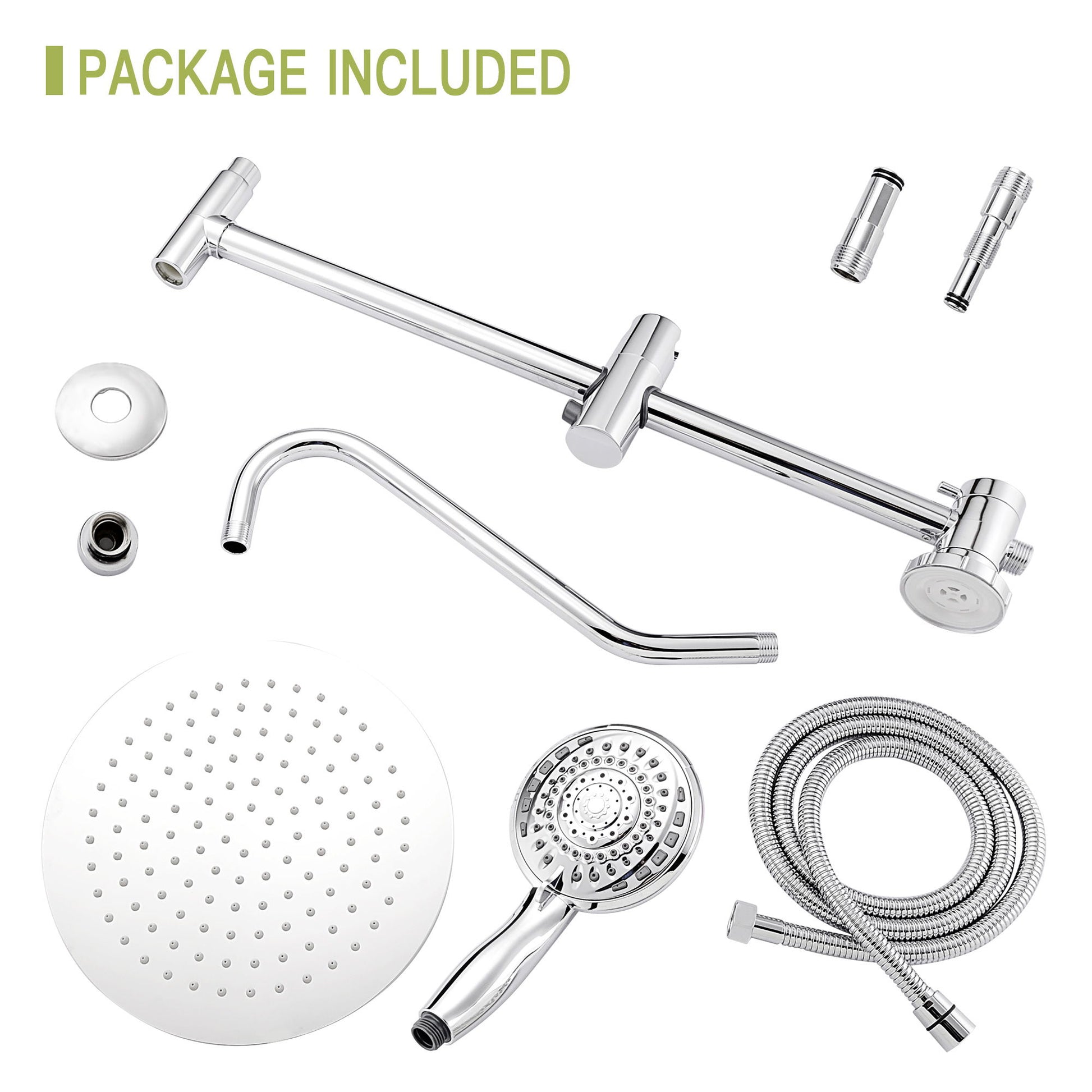 - Complete Package: Includes 10 inch shower head, hand-held shower, 59 inch hose, and 23.3 inch adjustment rod.