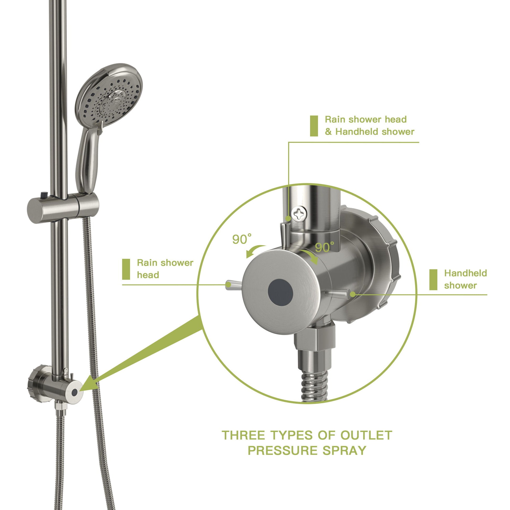 Shower System With 5 Function Rain Hand Shower And Slide Bar Combo