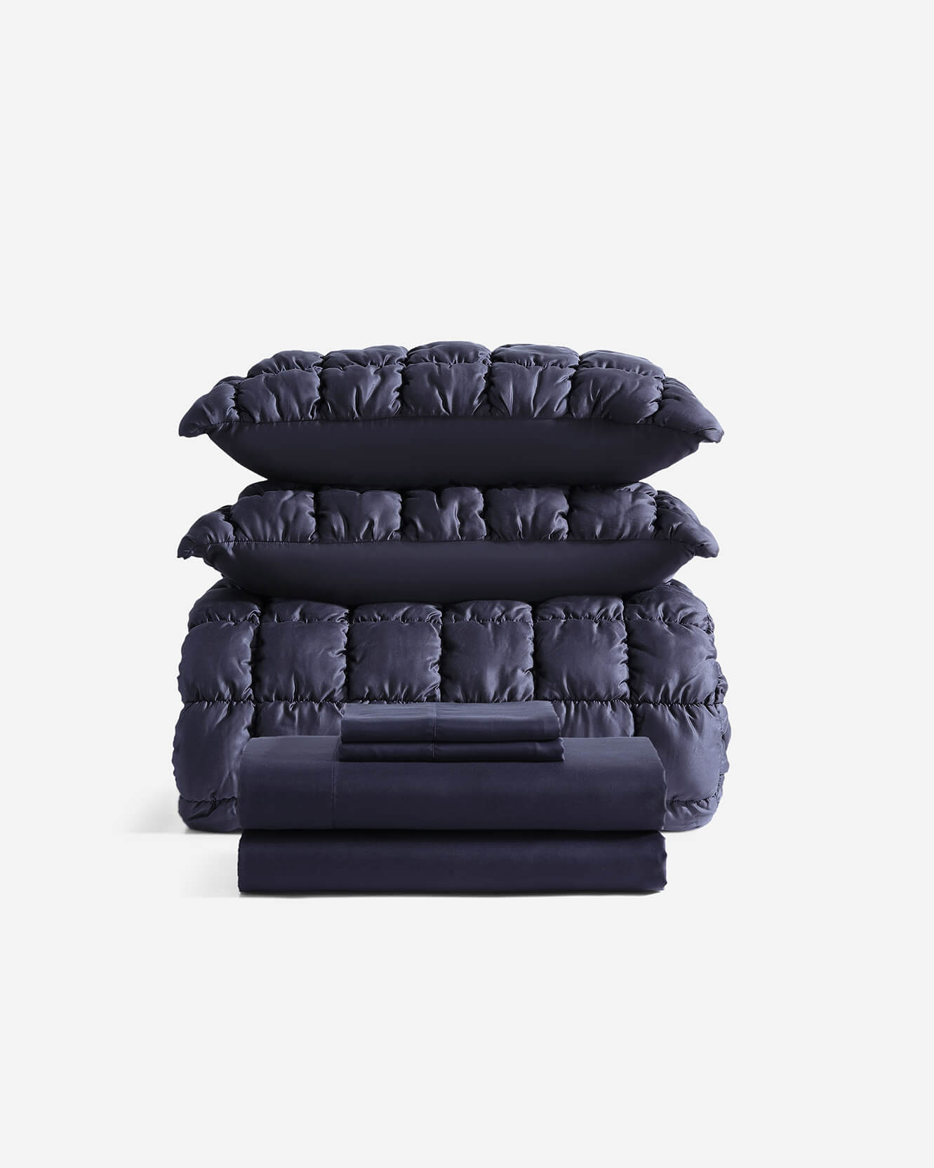 Looking for a full-bed makeover with deliciously smooth and luxurious sheets? Look no further than the Silky Lyocell Puff Complete Bundle. Featuring sustainably-sourced TENCEL™ lyocell - a lightweight, thermoregulating fabric with unparalleled softness - and a delightfully puffy, marshmallow-like design, this bundle will have you drifting off to sleep in a sea of silkiness.