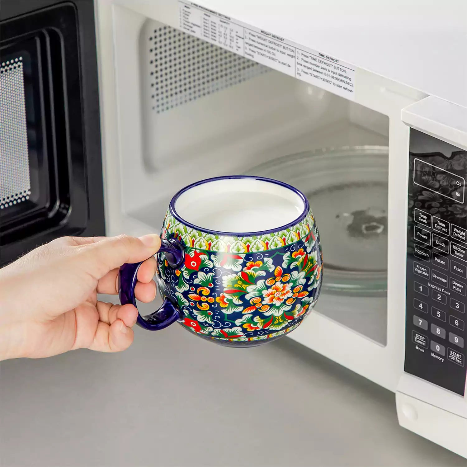 Complete your Simi Collection with this set of 6 deep round 15 oz porcelain mugs. Each mug showcases a smooth, generously rounded shape with Bohemian-inspired designs, bringing vibrant style to your coffee, tea, or hot chocolate moments. Durable porcelain, dishwasher- and microwave-safe, perfect for everyday use or as a Boho-inspired gift. Their large 15 oz capacity is ideal for hearty morning brews or relaxing evening drinks, adding a warm, artistic touch to your kitchen, dining table, or coffee nook.