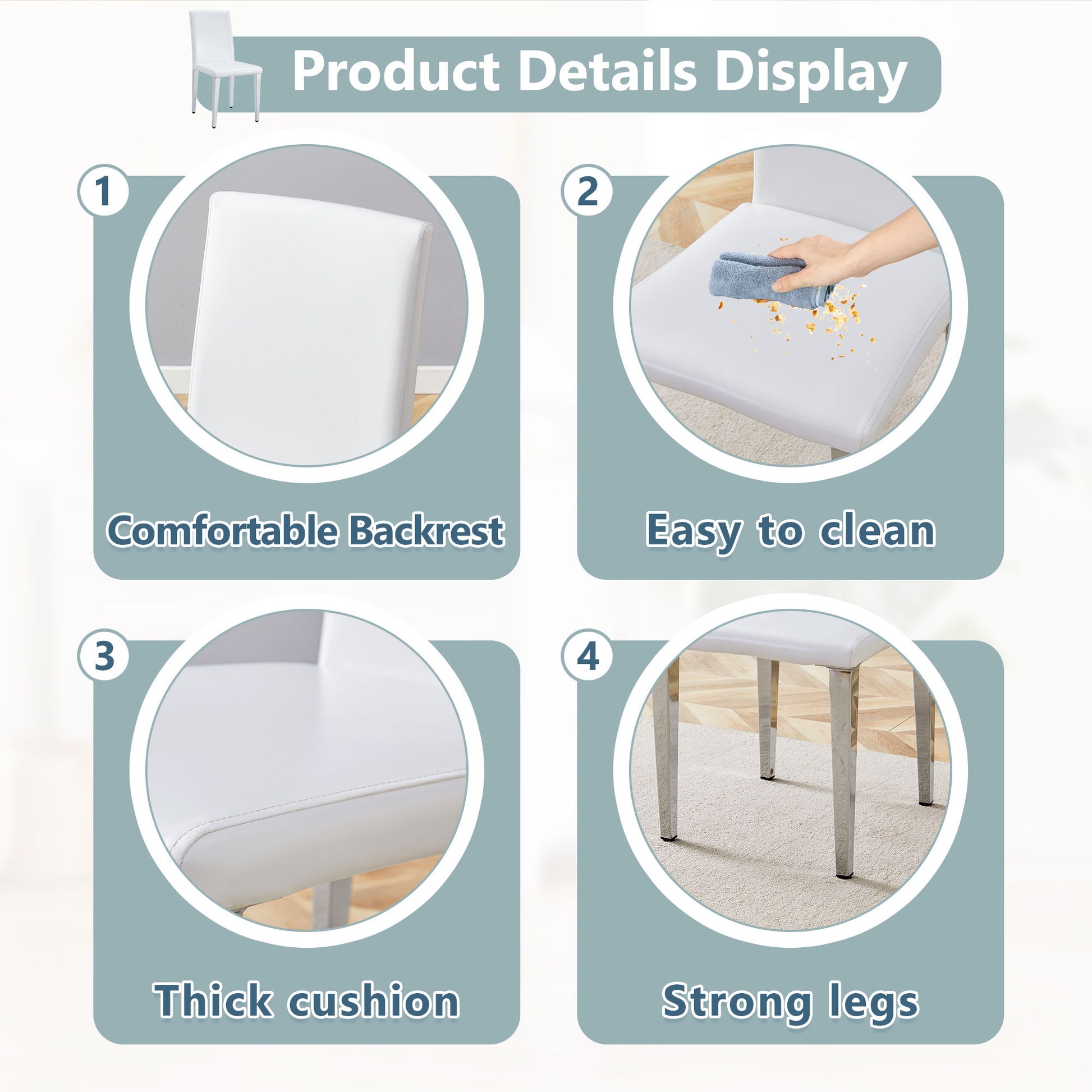 Simple And Versatile Dining Chairs With Metal Legs, (Set of 4) - White / Silver