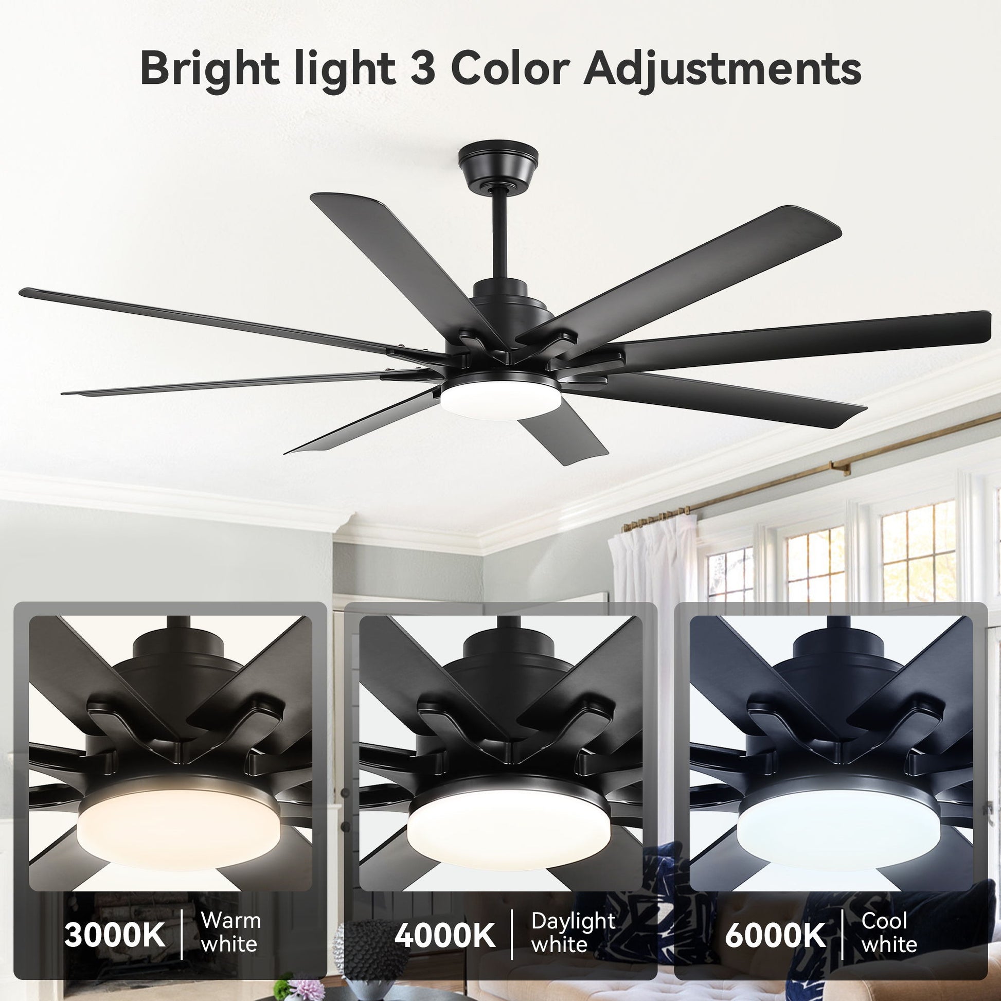Smart Ceiling Fan With 8 Blades, Voice Remote Control, 6 Wind Speeds, Reversible DC Motor, 3 Color Lighting - Black