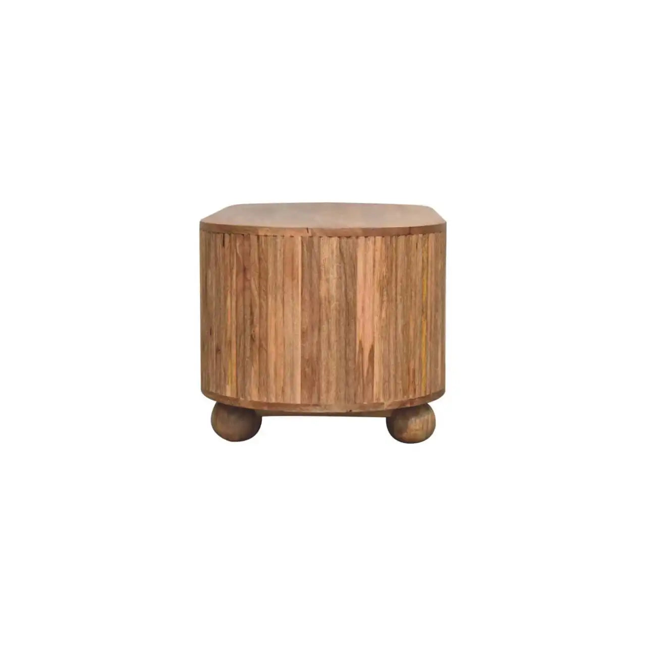 - Features: 100% solid mango wood,oak-ish finish,open slot,4 sturdy ball feet,Handcrafted,Sustainable,modern art