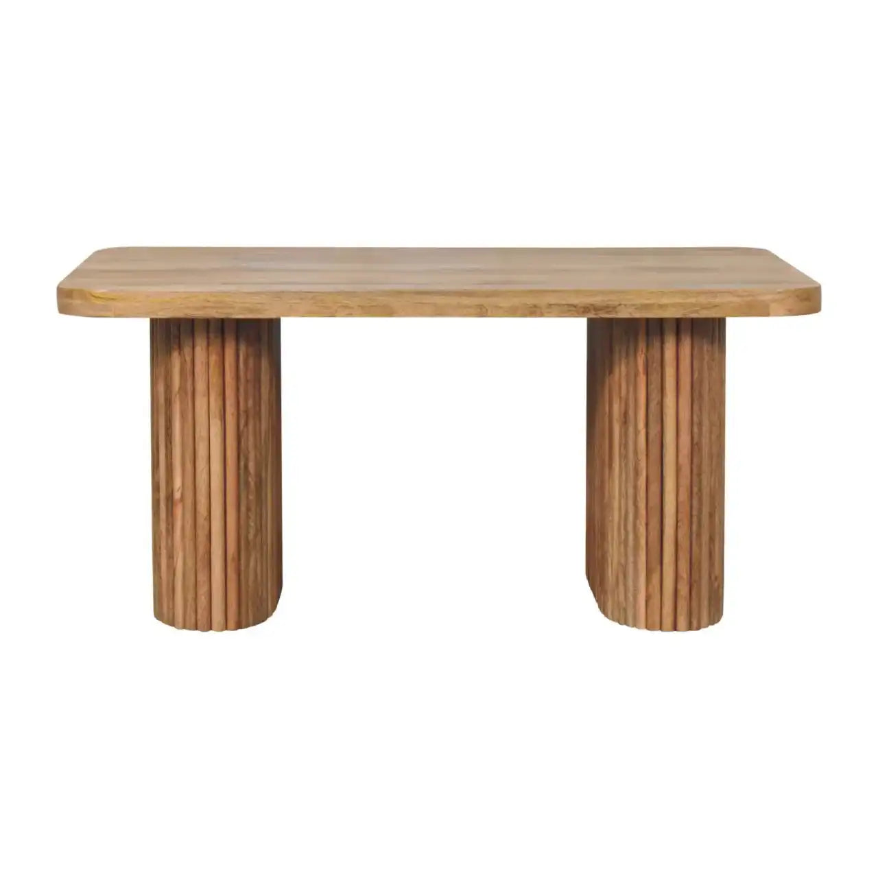 - Features: 100% solid mango wood,oak-ish finish,4 straight chunky leg,Handcrafted,Versatile,Modern art