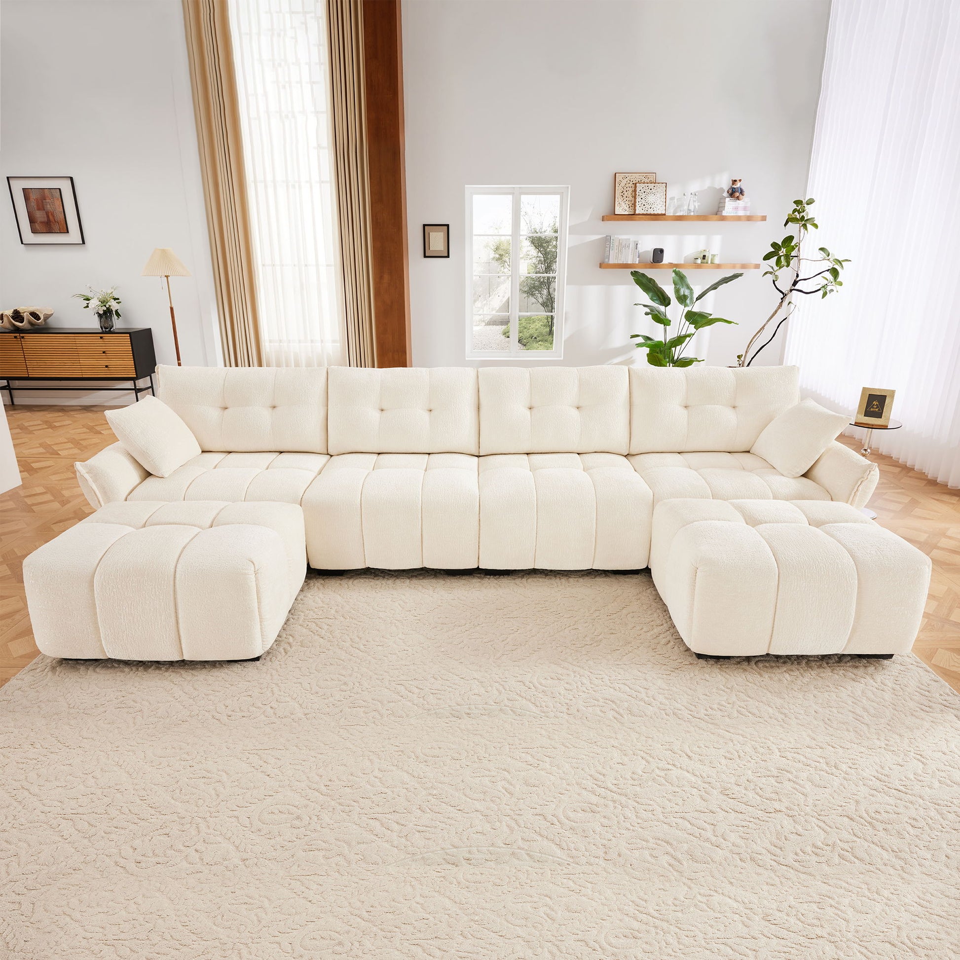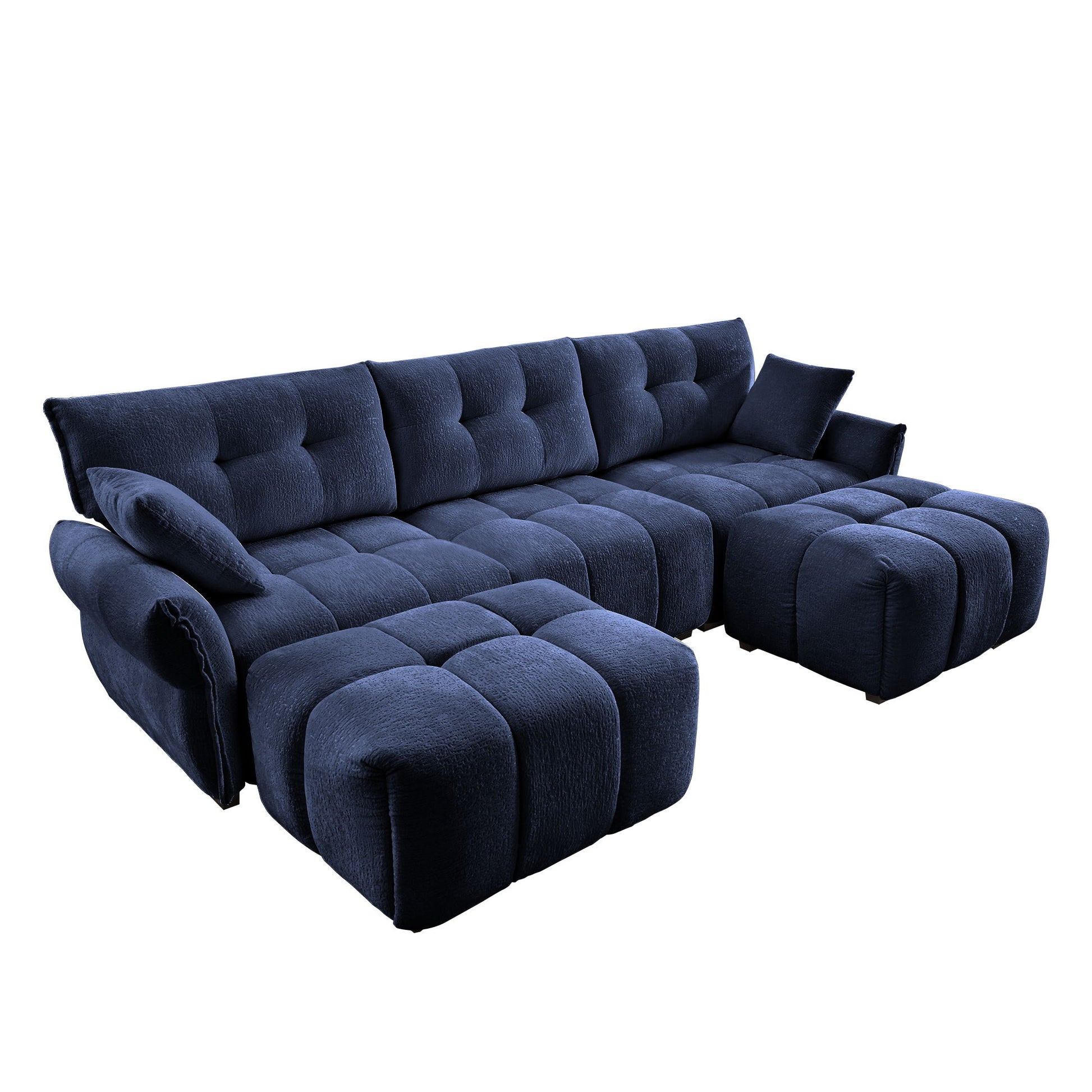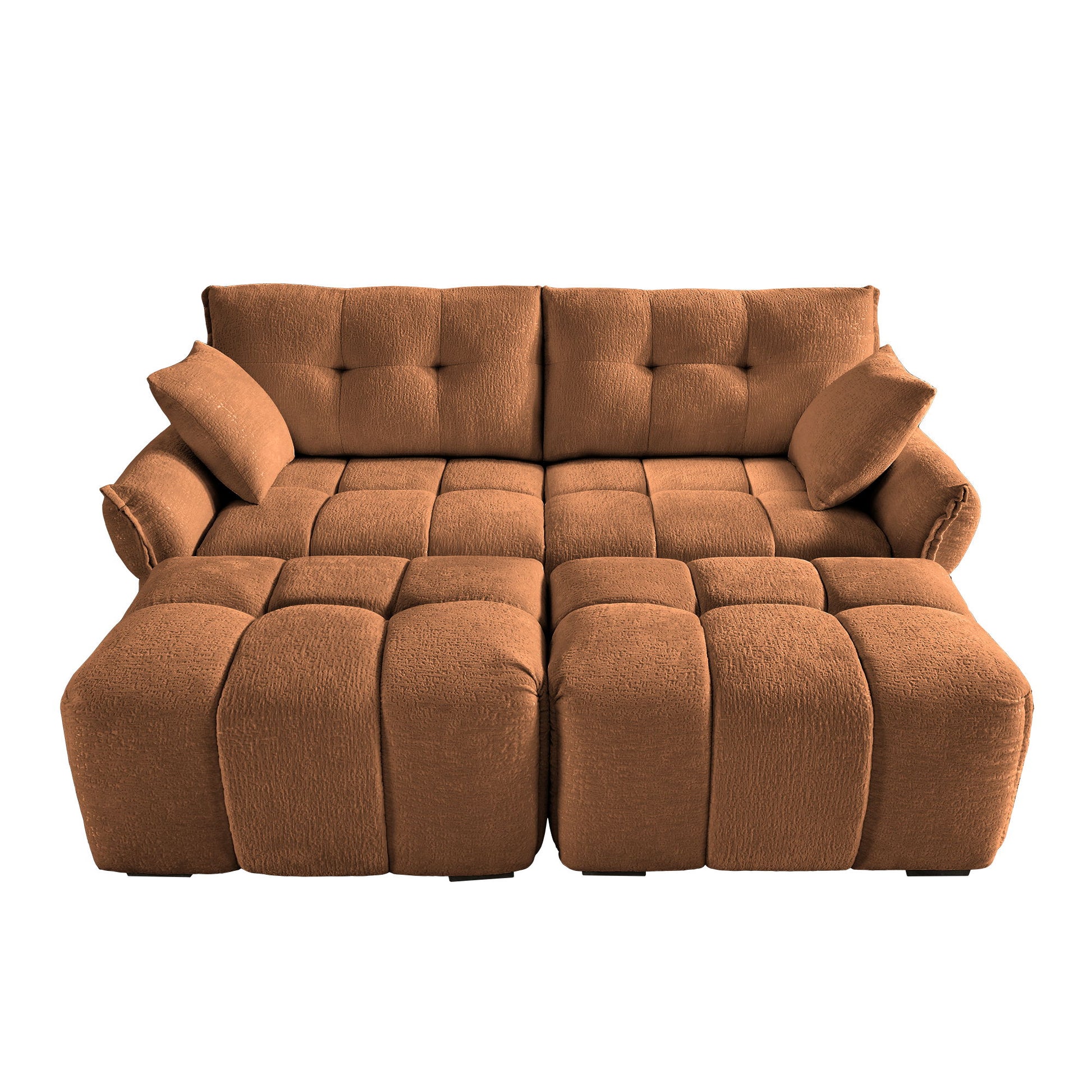 Sofa Set With Ottoman And Pillows, Textured, High Resilience Cushions