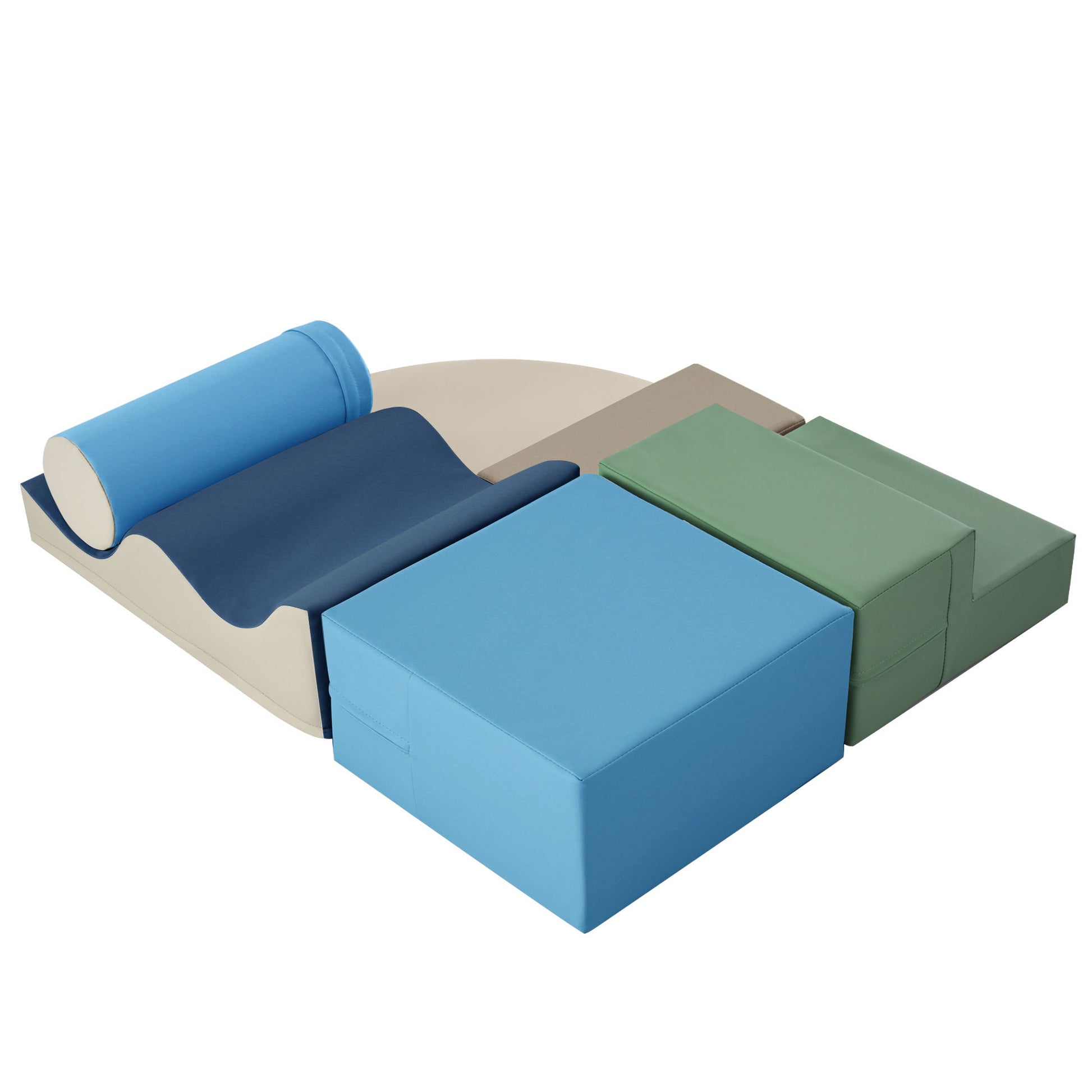 - Comprehensive Set: Includes a staircase, square mat, rectangular mat, fan-shaped mat, wavy climbing mat, and cylinder.
