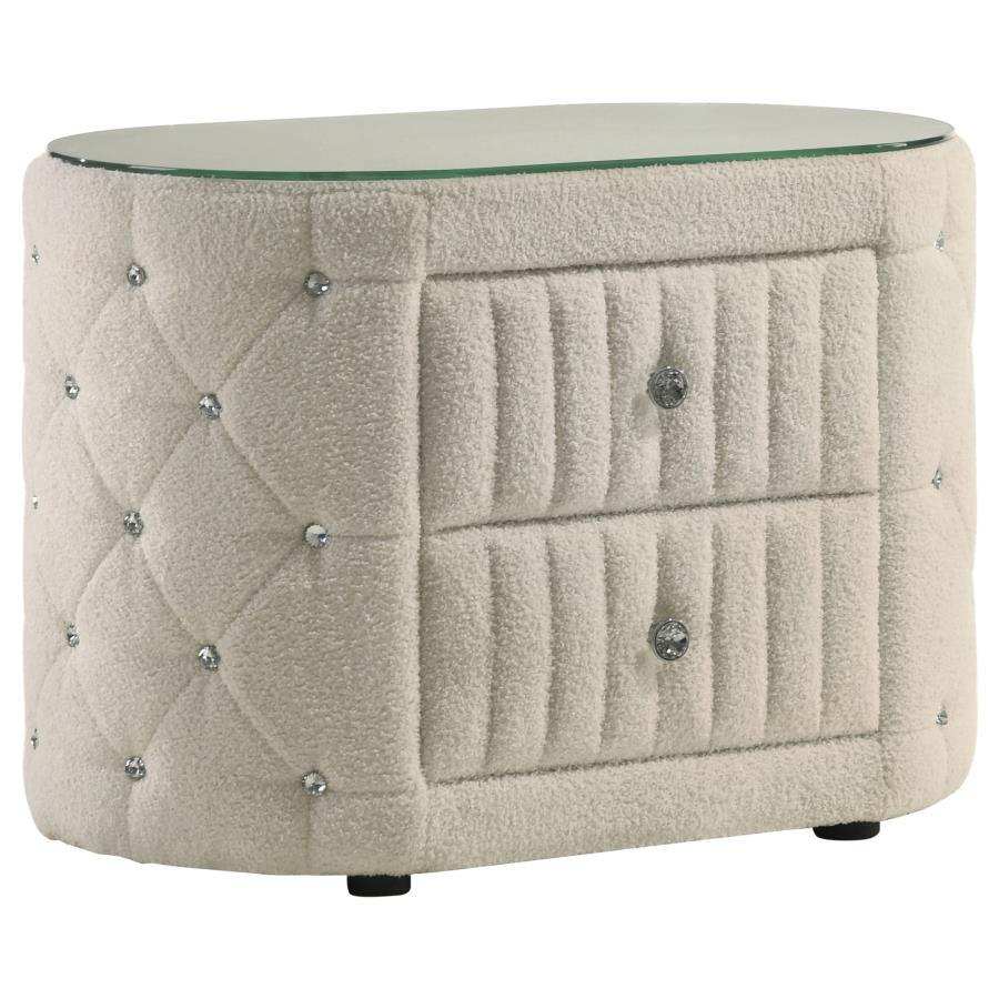 Sonya - 2-Drawer Upholstered Nightstand Bedside Table - Ivory