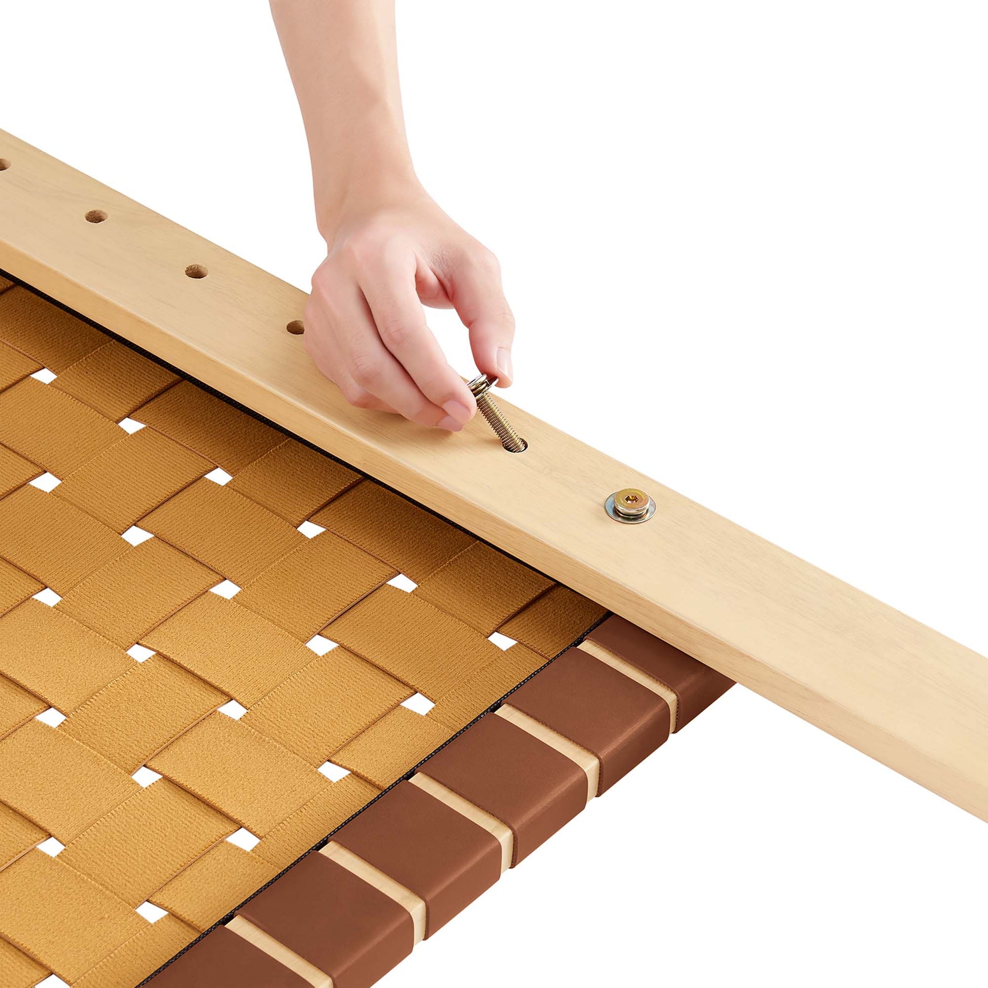 Elevate your bedroom's ambiance with the Sparta Vegan Leather Weave Twin Headboard, a perfect blend of robustness and artistic flair. Constructed meticulously with a solid wood frame, this twin size headboard introduces enduring stability and a touch of organic aesthetics. The standout feature is its basket woven vegan leather craft, adding a unique dimension and a tactile texture that captivates the eye. Perfect for a children's bedroom, small guest room, college dorm room, or shared bedroom, the Sparta Headboard offers a standing design with 5 mounting positions. This adaptability makes the twin bed headboard an ideal fit for any bedroom space. The fusion of durability, style, and versatility makes this twin bed headboard a distinguished choice for those seeking to infuse their sleeping space with sophistication and elegance. Assembly Required.