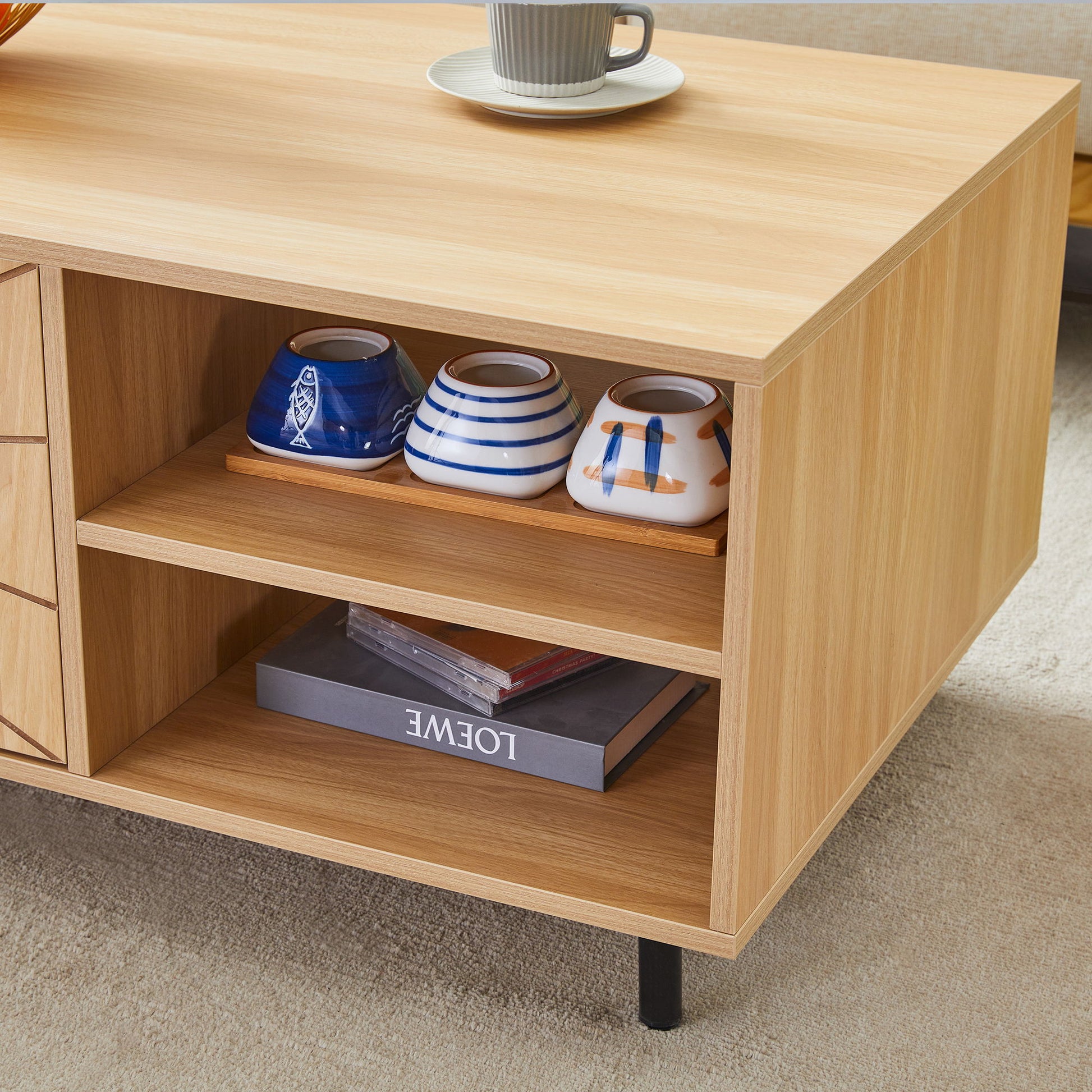 - Multi-functional Storage: The coffee table is designed with open shelves for convenient storage of books, magazines, decorative items, etc., enhancing the practicality of home furnishings.