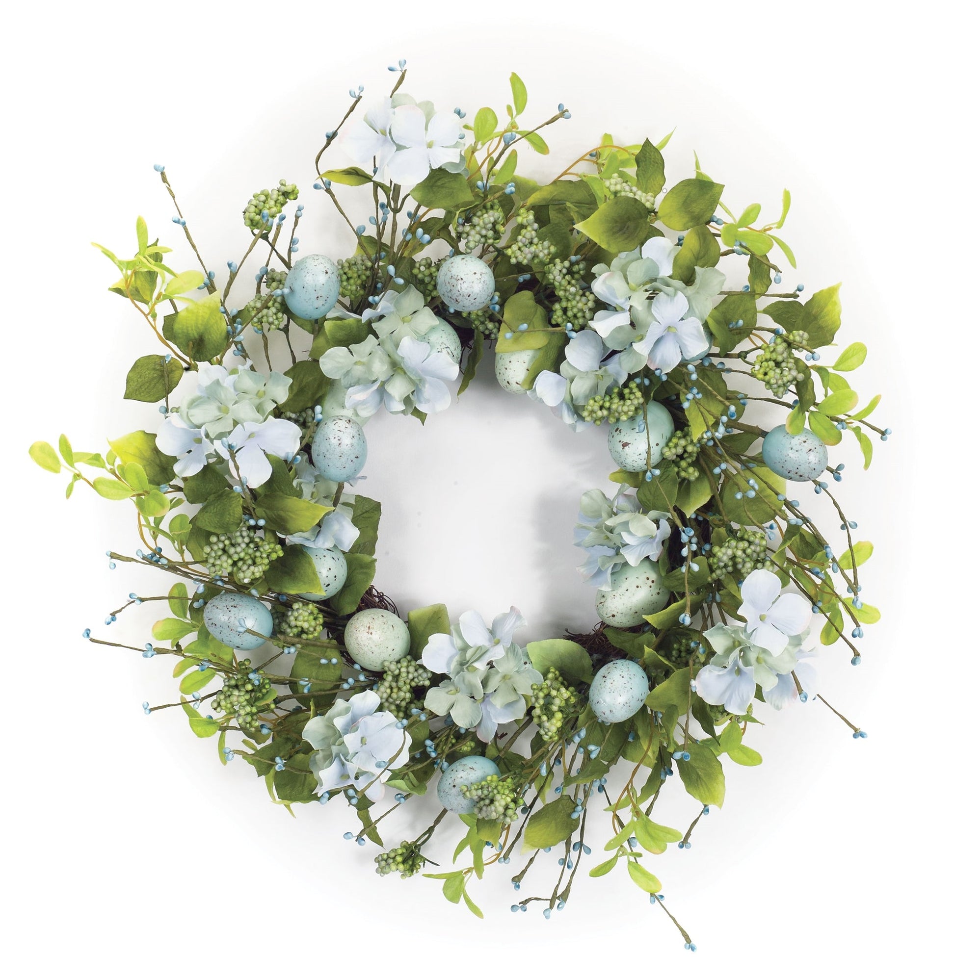 Add a pop of natural color to your front door with this beautiful Floral Wreath. The varigated foliage with the floral and egg accents is a great addition to your everyday home decor. The quality foam eggs are sure to last for seasons to come. The high-grade twig base gives the peice additional color and depth. Display the wreath on your front door or entryway to welcome your guests in style.