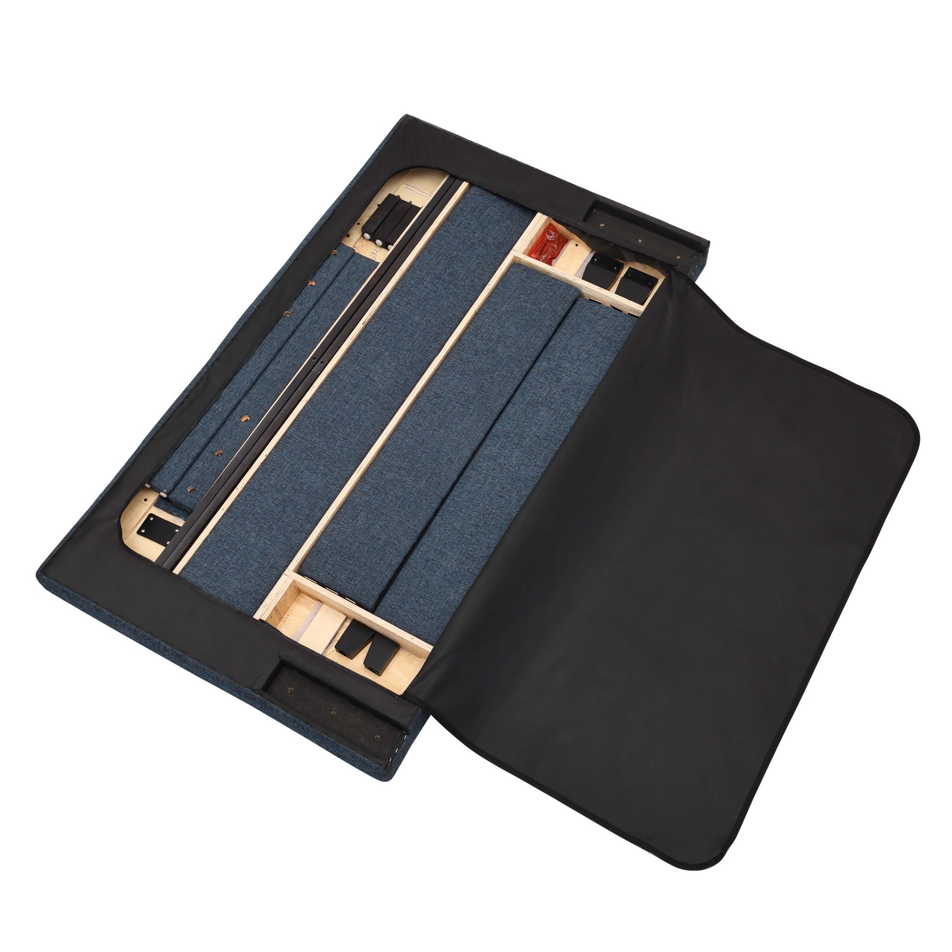 Queen Size Squares Upholstered Platform Bed - Navy Blue Denim