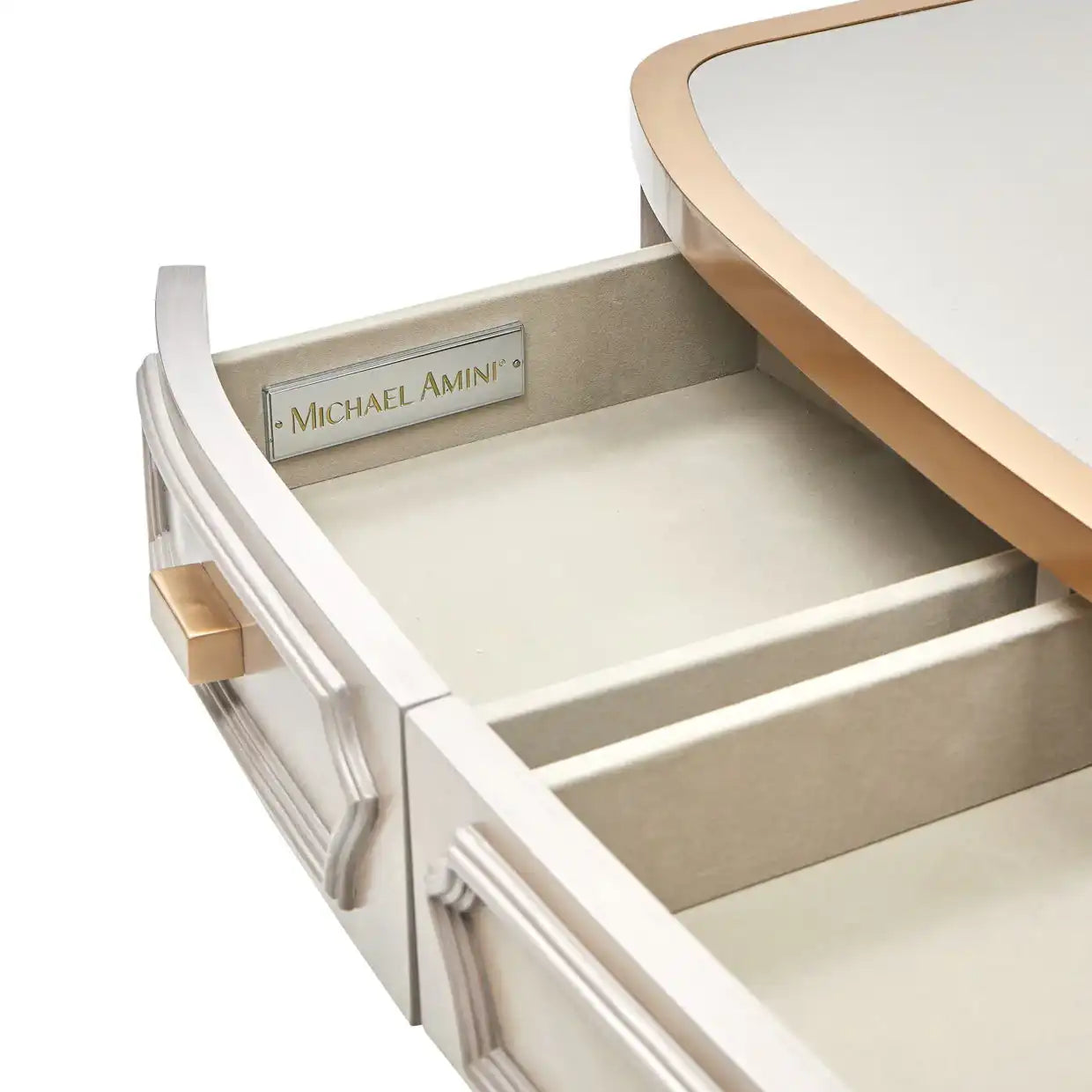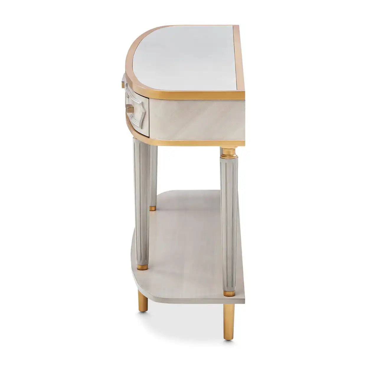 Welcoming you home with its sophisticated charm, the Saint Charles Console Table is designed to blend beauty and practicality seamlessly. The dove grey finish radiates a serene ambiance, while the luxurious features provide a touch of opulence to your everyday life. Whether you use it to display treasured décor or to keep your essentials within reach, this console table ensures both style and convenience.