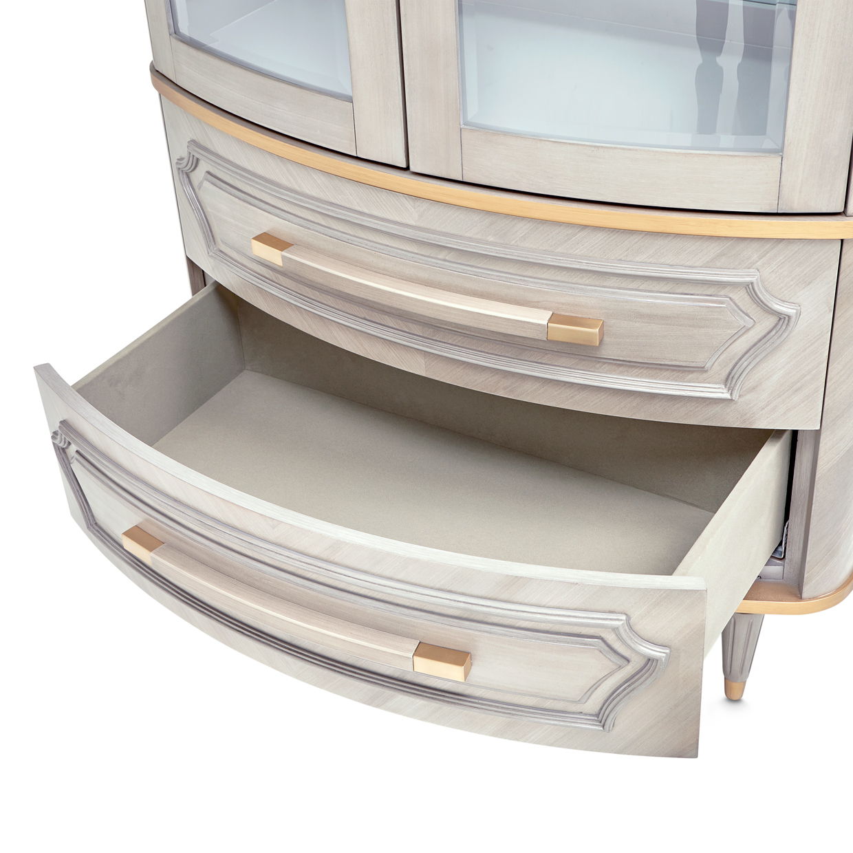 Celebrate the beauty of your cherished collectibles with the Saint Charles Display Cabinet, an exquisite blend of functionality and elegance. Illuminate your valuables with the subtle sophistication of built-in LED touch lighting, creating an inviting ambiance. The central glass panel of this stately cabinet ensures your items are the focal point, complemented by the serene Dove Gray finish that envelops the solid sides and sleek framework.