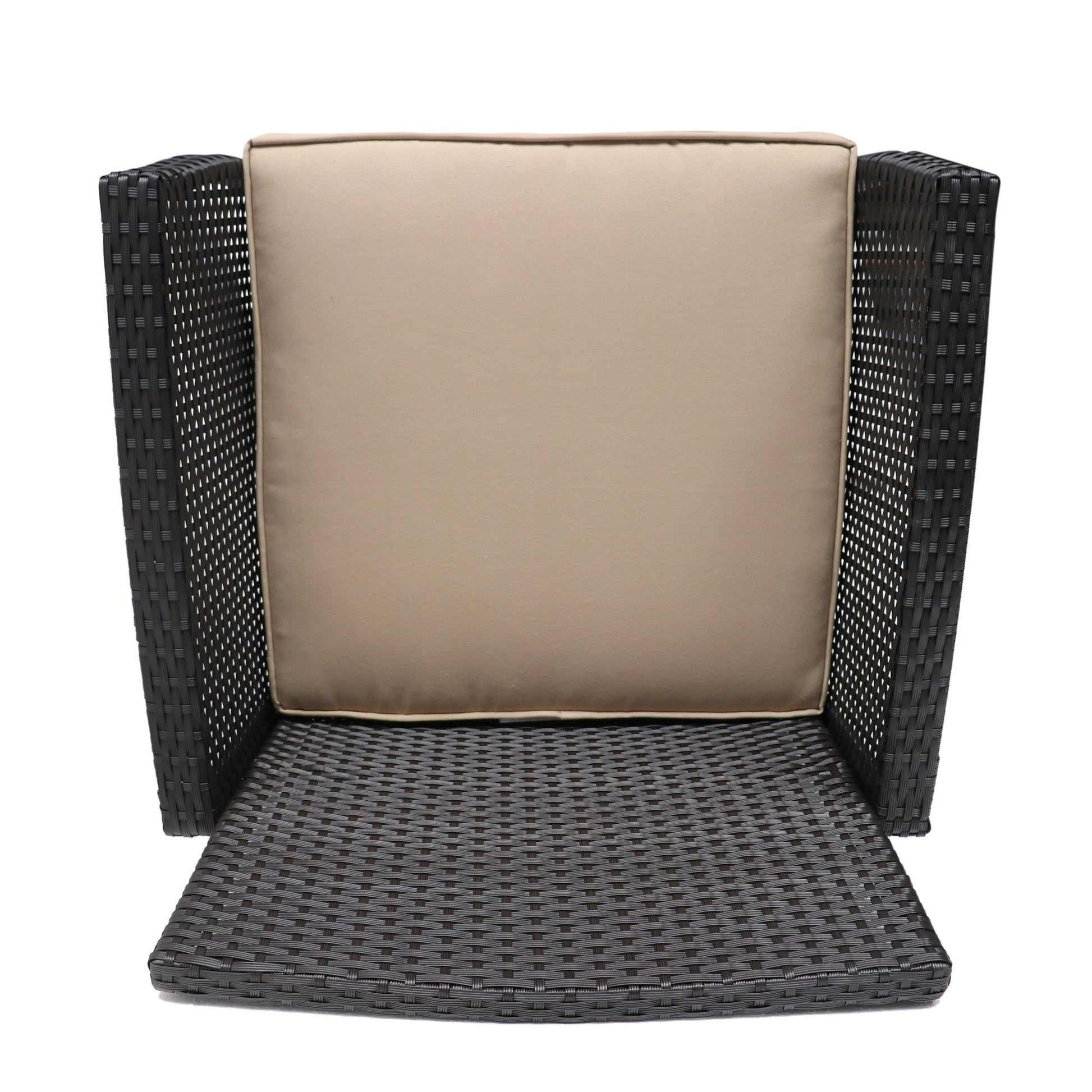 - Crafted from PE rattan, iron, and waterproof fabric for longevity