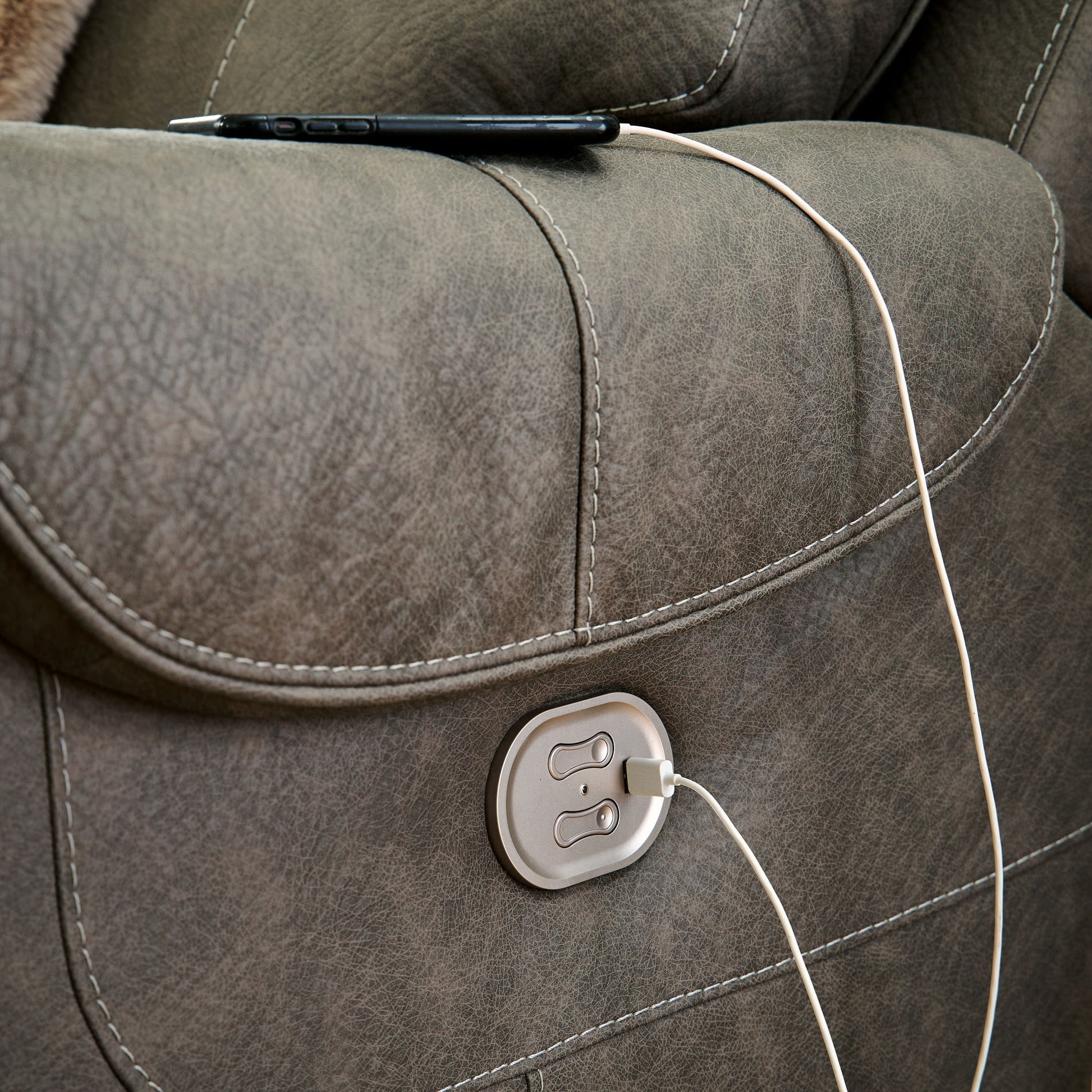 Destination: chic comfort. This power reclining sectional launches your living room into superior form with stellar attention to detail. Exemplifying attainable luxury, its handsome hue has an air of sophistication you’ll long to lounge in. And when you’re done basking in the glow of its sleek style, recline with indulgent motion features to welcome head-to-toe relaxation.