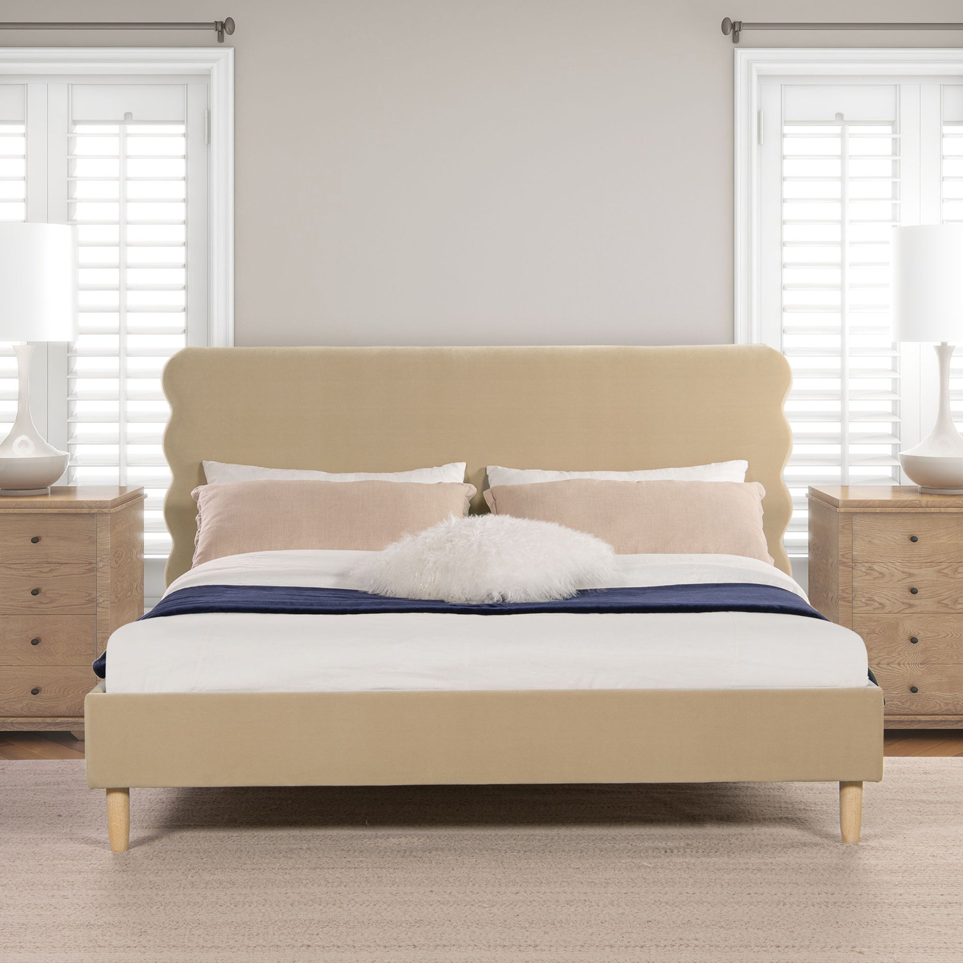 Stockholm - Queen Modern Wavy Headboard Platform Bed - Fawn Brown