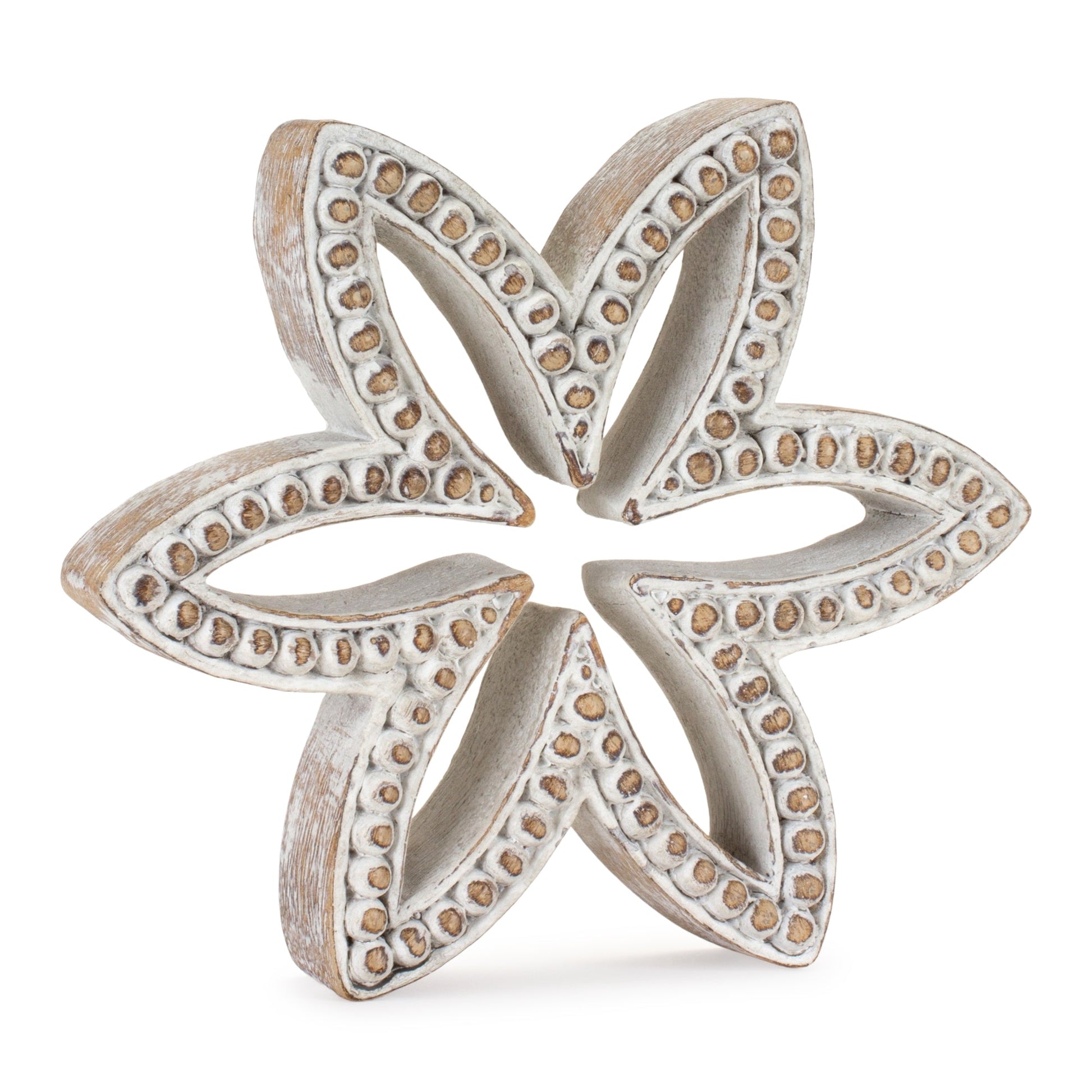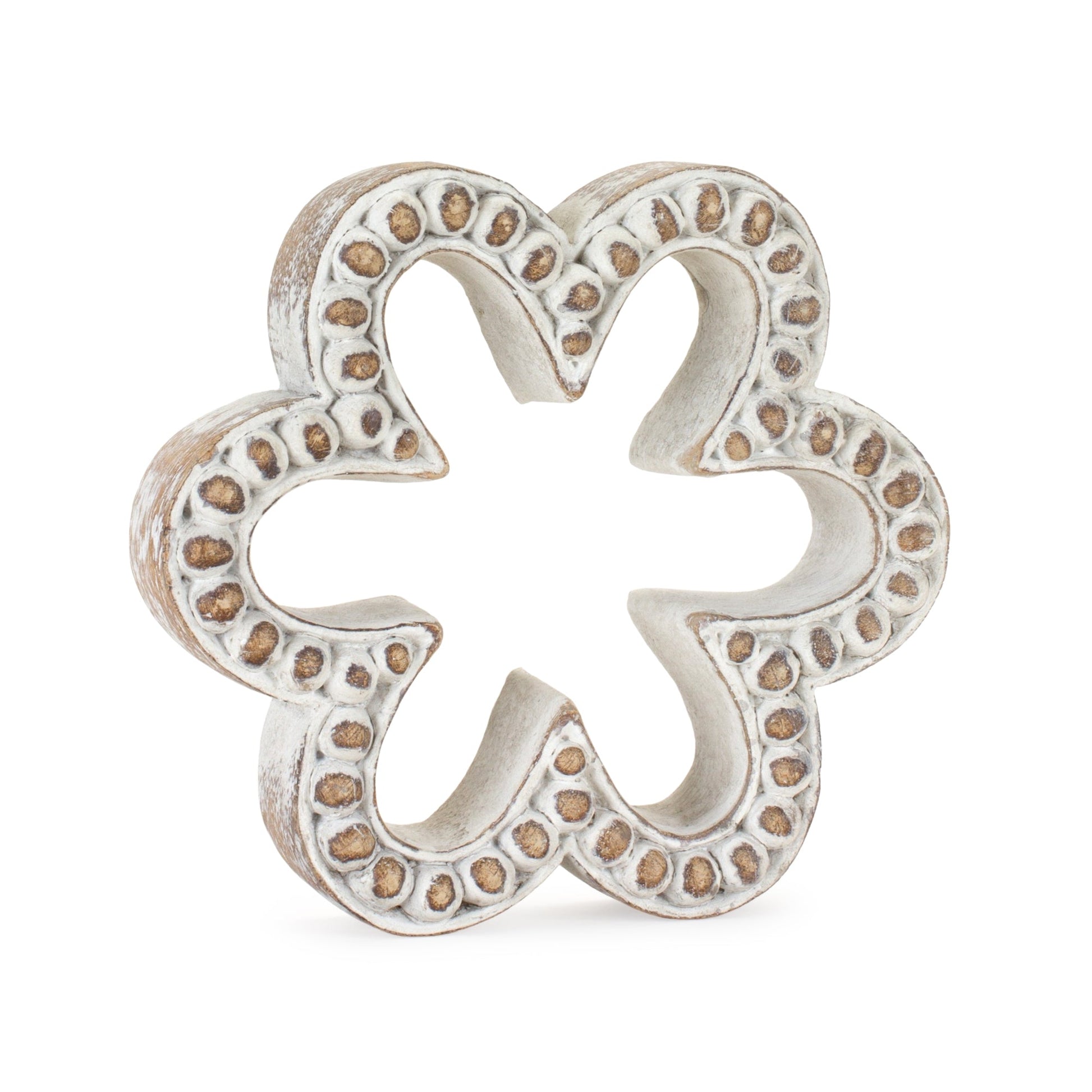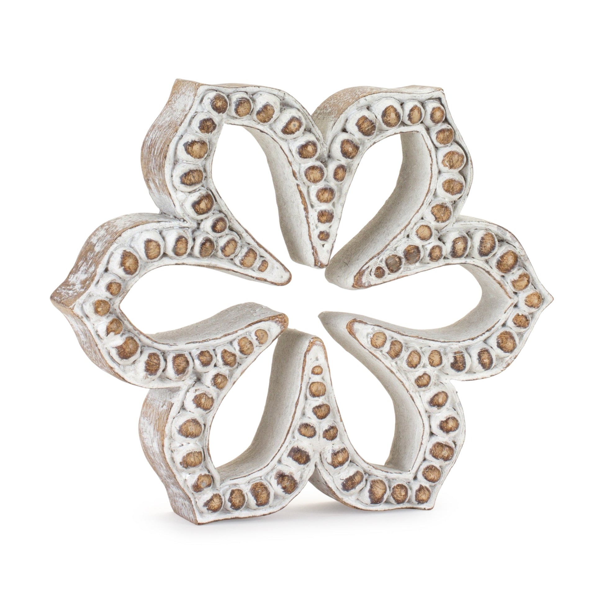 Stone Beaded Flower Shelf Sitter with White Washed Finish (Set of 3)