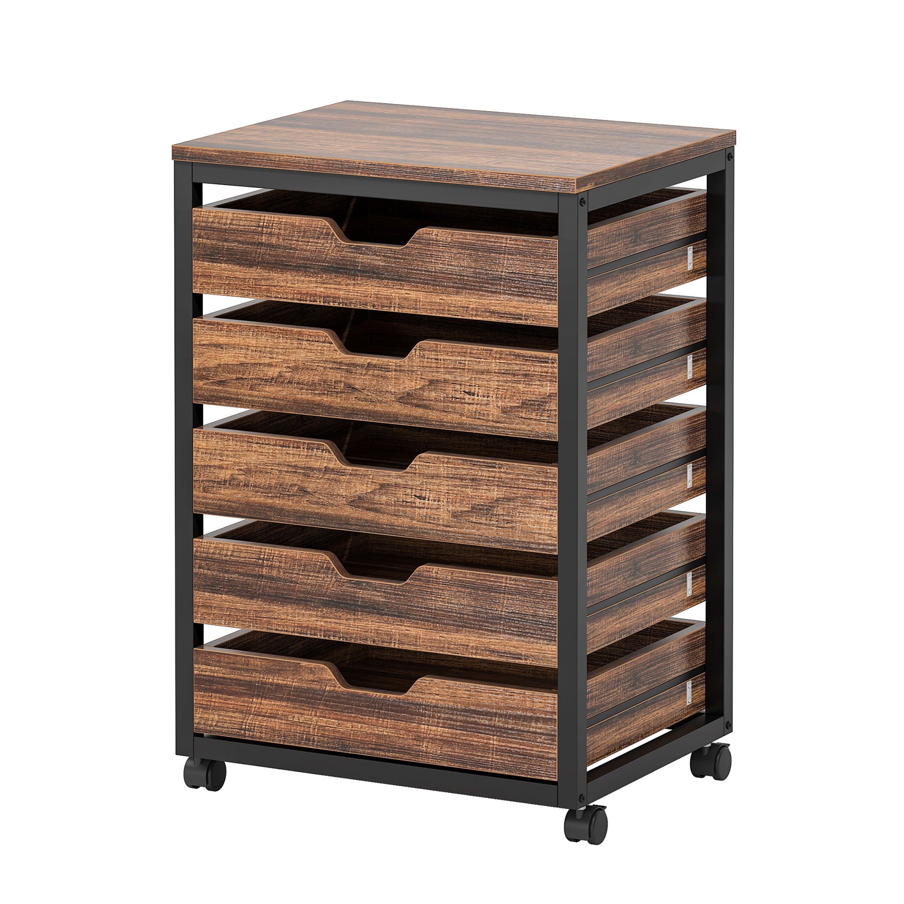 5 Drawer Storage Chest With Wheels - Brown / Black