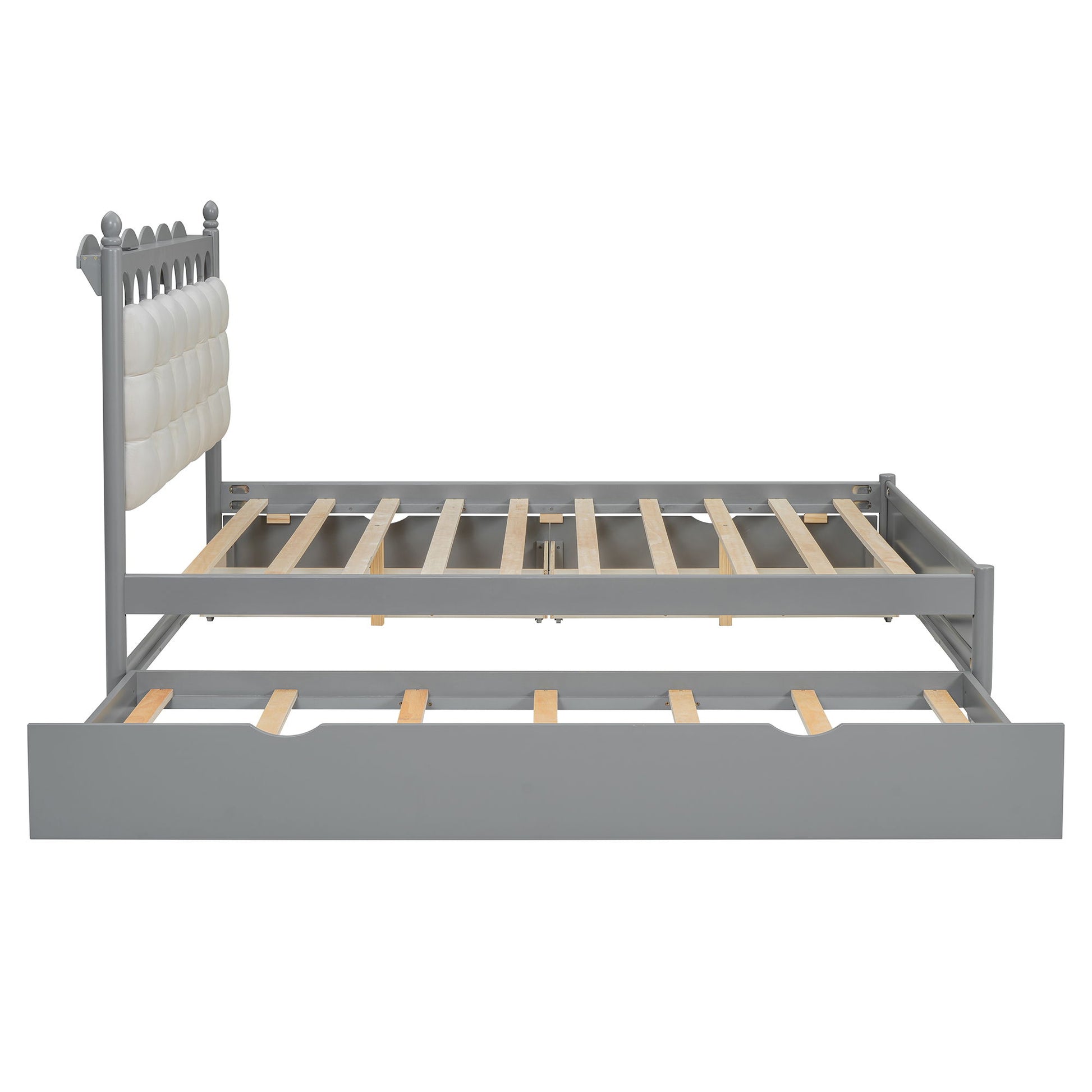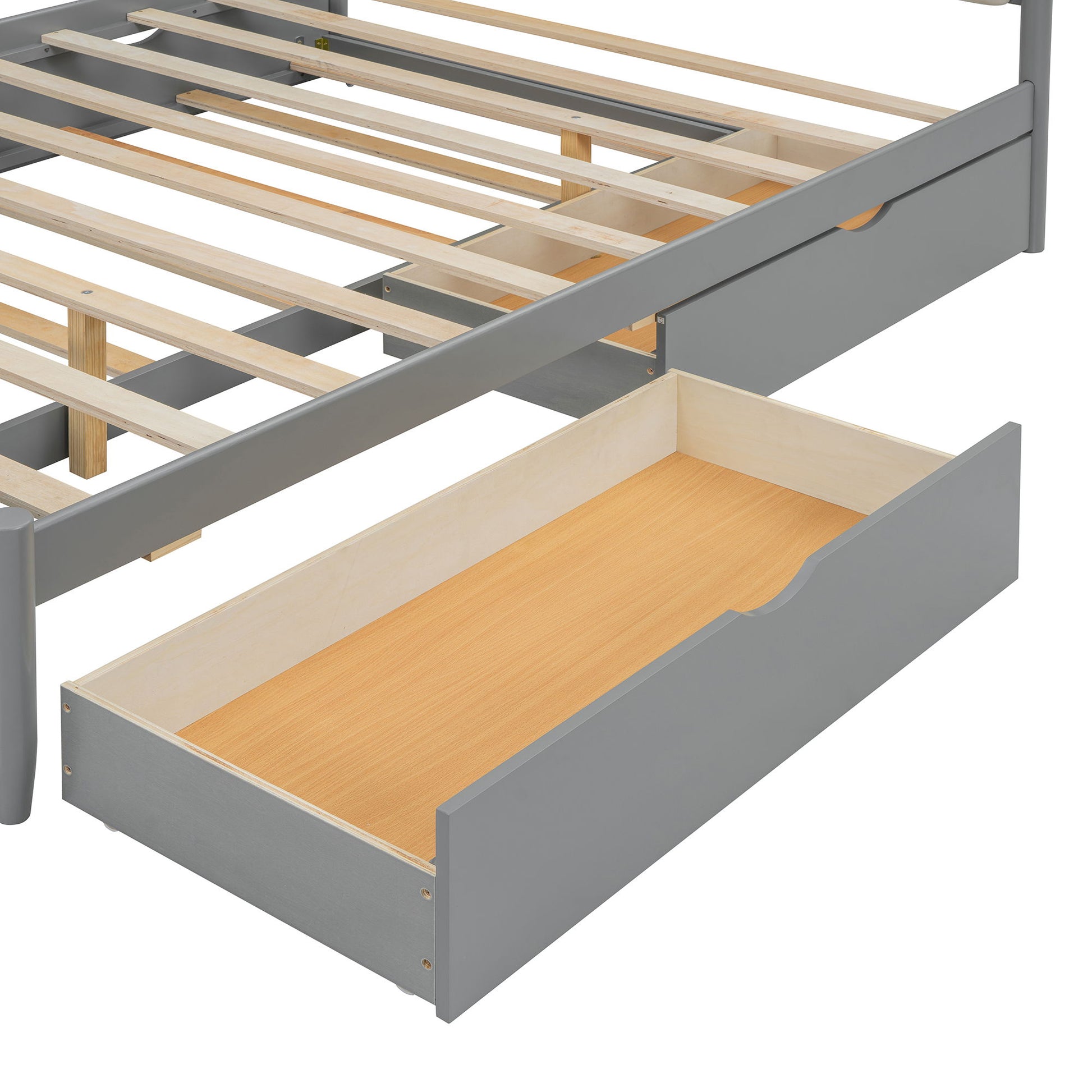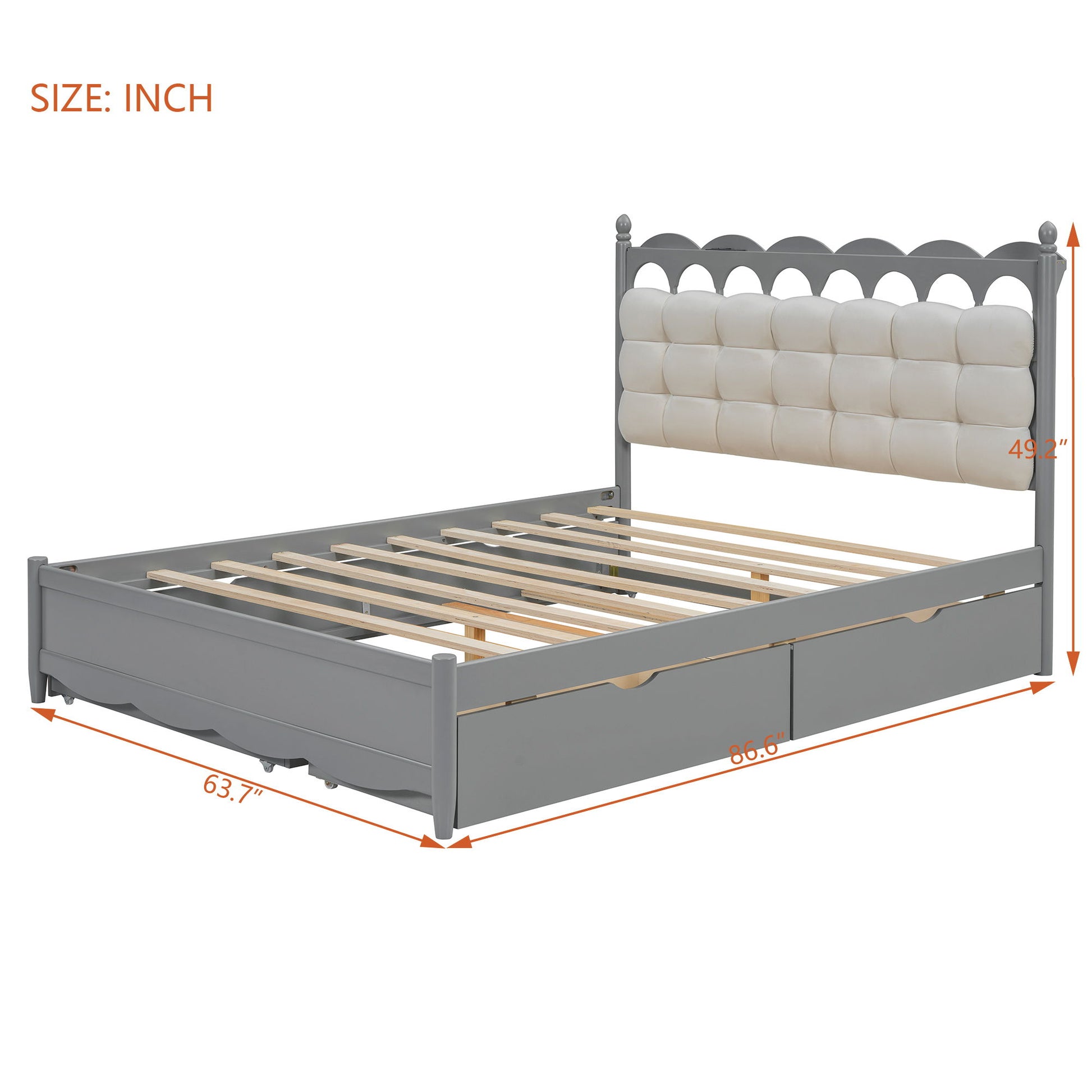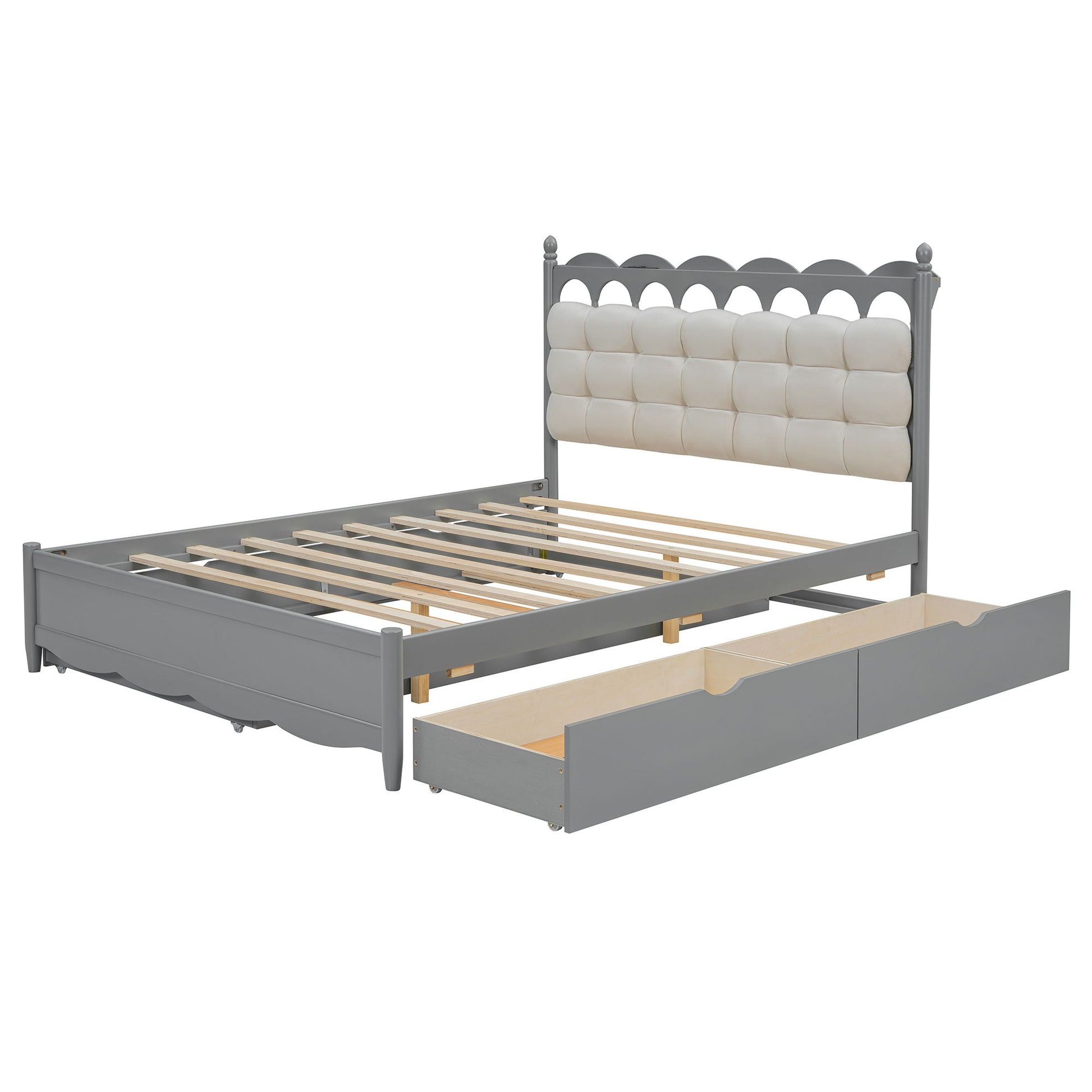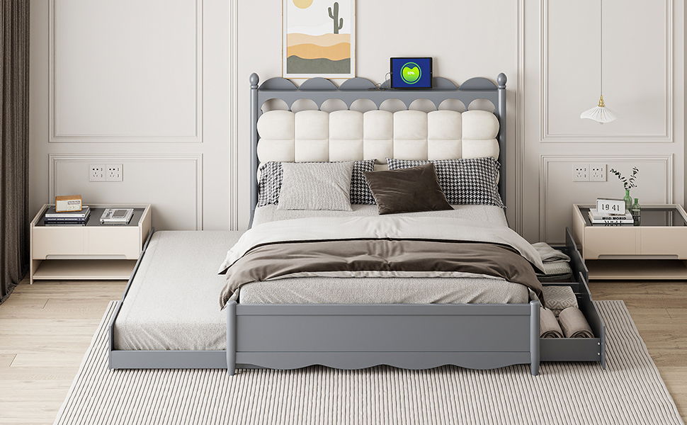 Queen Size Storage Platform Bed, With 2 Big Drawers, Twin Long Size Trundle, One Set Of Sockets & USB Ports - Gray