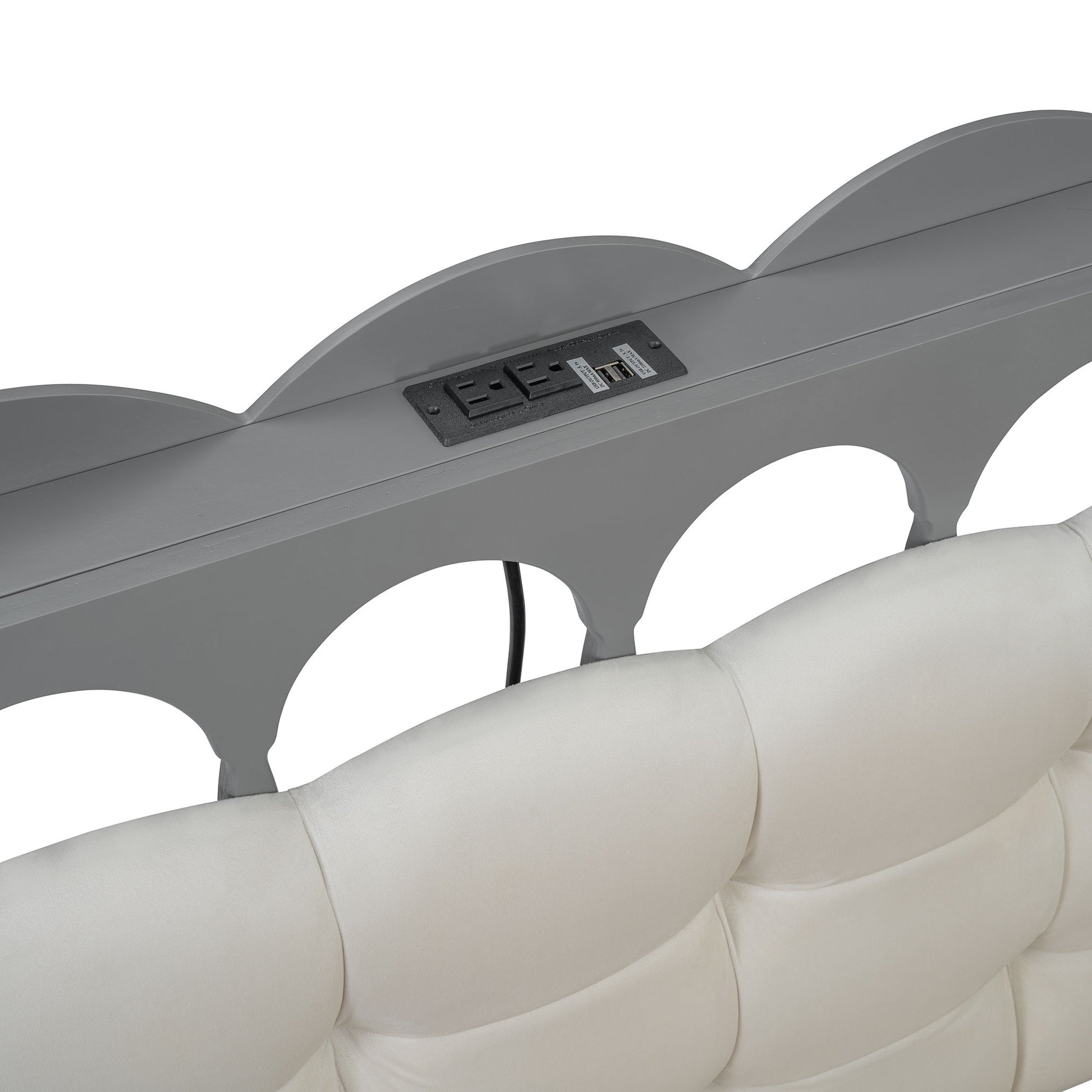 Queen Size Storage Platform Bed, With 2 Big Drawers, Twin Long Size Trundle, One Set Of Sockets & USB Ports - White