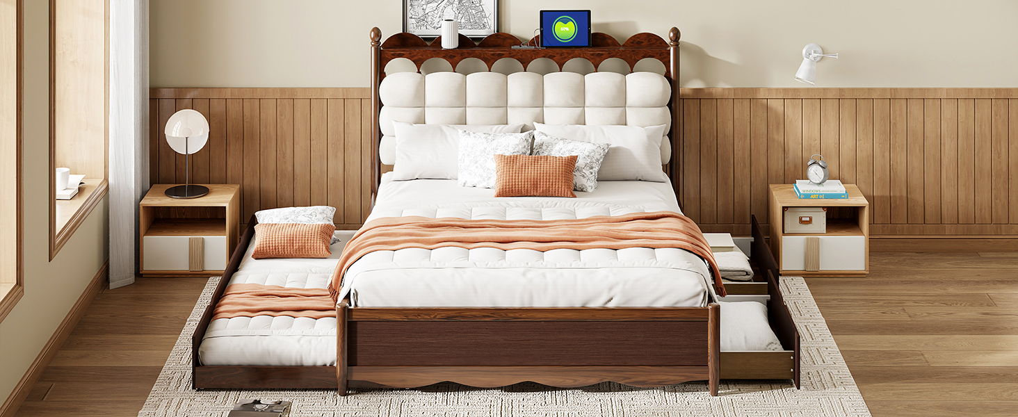 Enhance your bedroom with our chic Platform Bed, crafted to seamlessly blend functionality and elegance. With a range of styles to choose from, this bed is the ideal way to elevate your home’s décor. Create a serene, clutter-free space that combines aesthetic appeal with practical design. Equipped with a convenient trundle beneath the bed, it's perfect for those who love hosting sleepovers. This versatile, space-saving piece brings both style and functionality to your home, making it an essential addition to any bedroom.