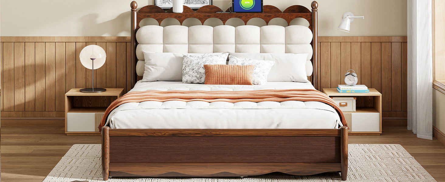 Color Options: Personalize your bedroom with our carefully curated color options. Each shade is selected to complement and elevate your bedroom's beauty, making it easy to find the perfect fit for your space. The bedside is equipped with USB and sockets for more convenience.