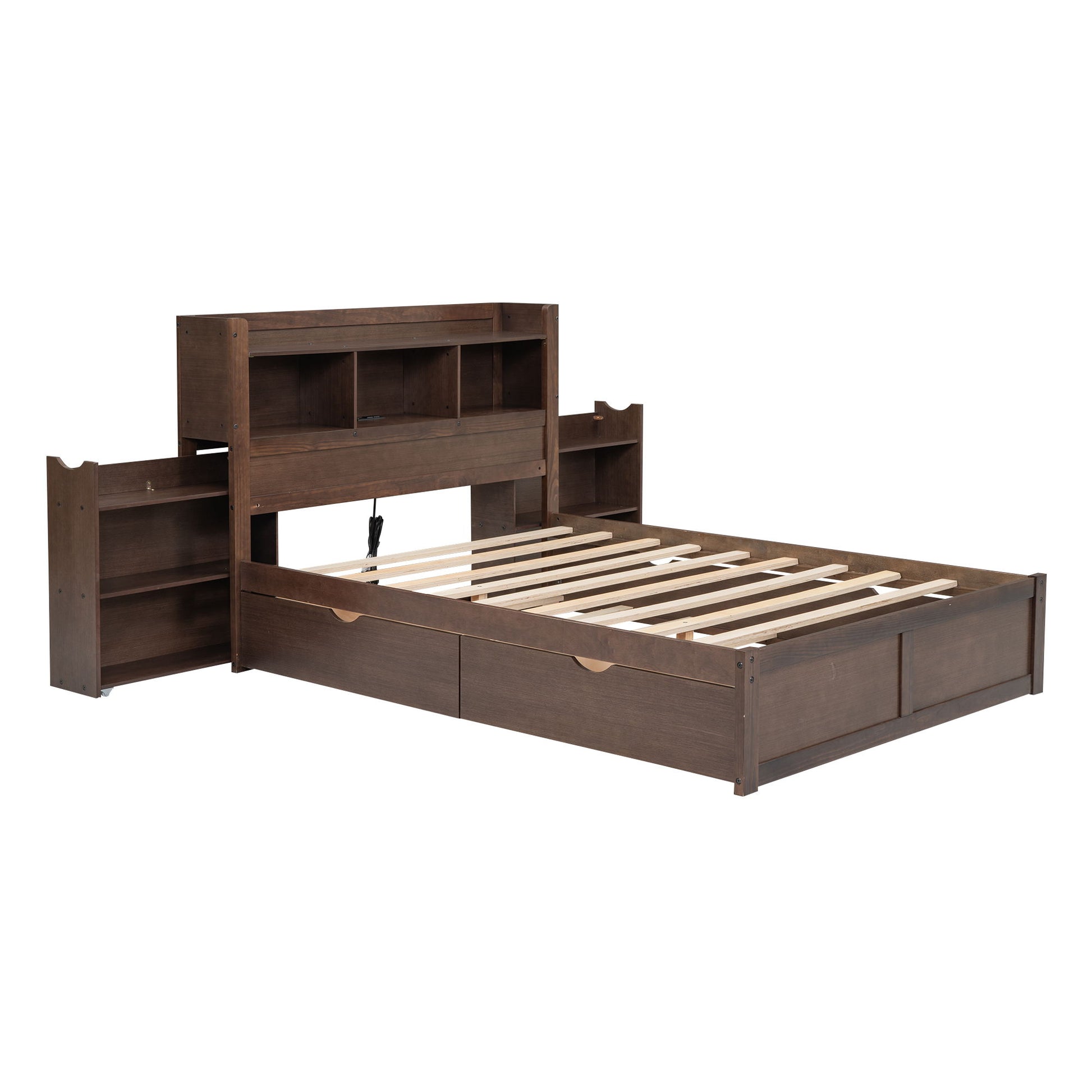 Full Size Storage Platform Bed With Pull Out Shelves, Twin Trundle, And 2 Drawers - Espresso