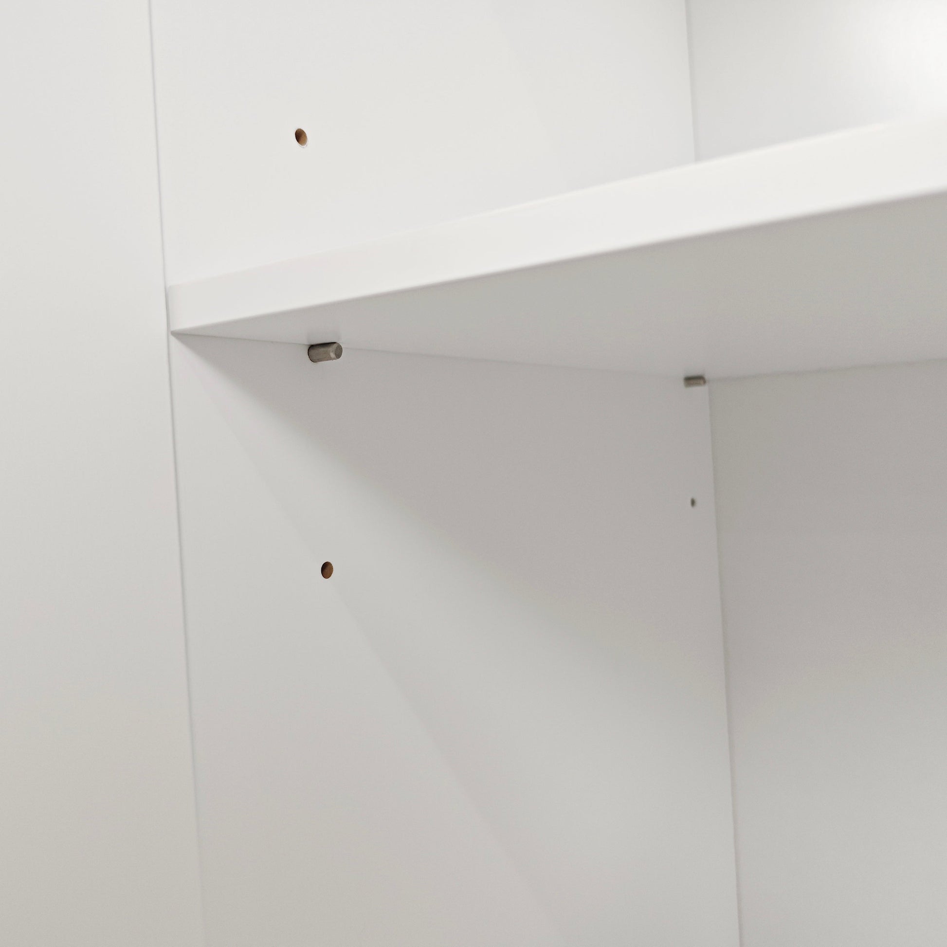 - Adjustable shelf that can be positioned at three different heights for customizable storage