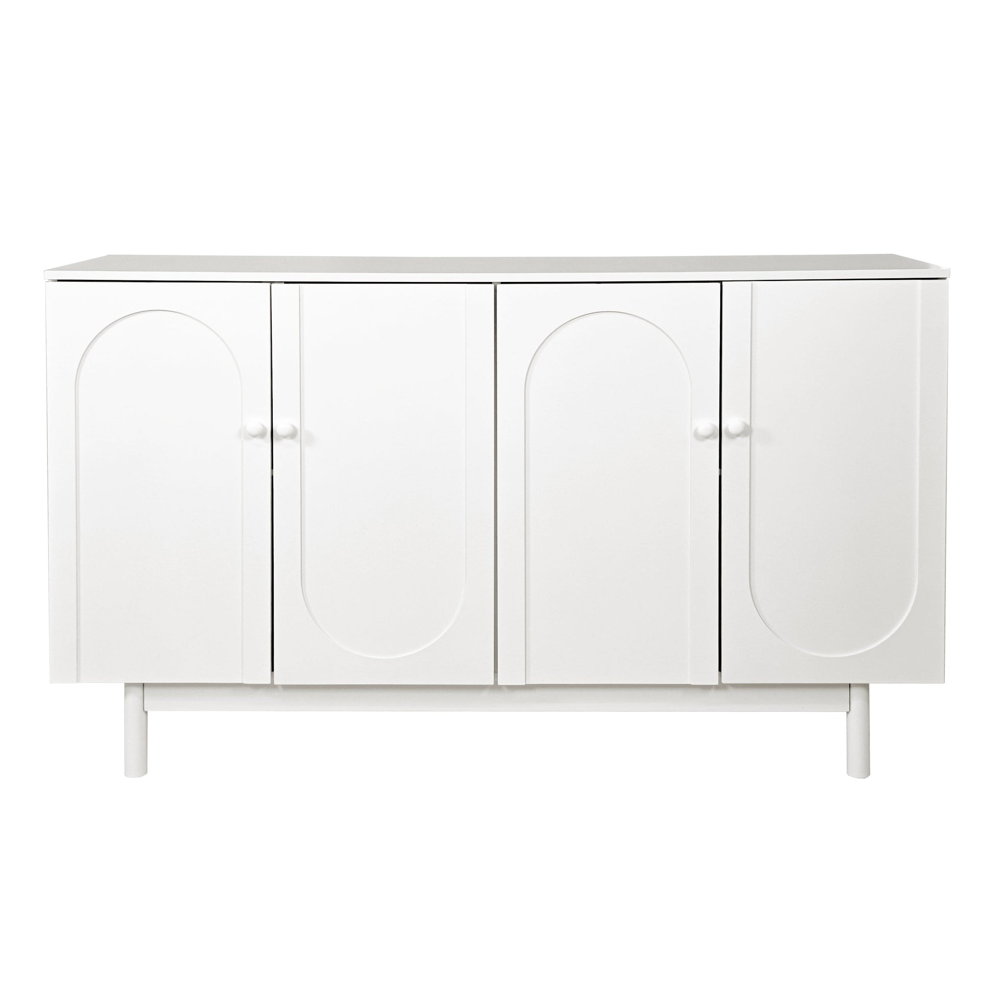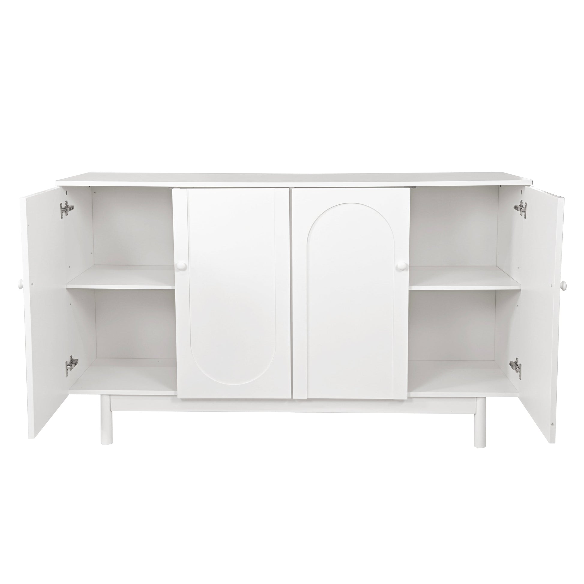 This stylish 4-door storage cabinet features a minimalist white finish and intaglio detailing, perfect for enhancing storage in living rooms, bedrooms, or kitchens with both form and function.