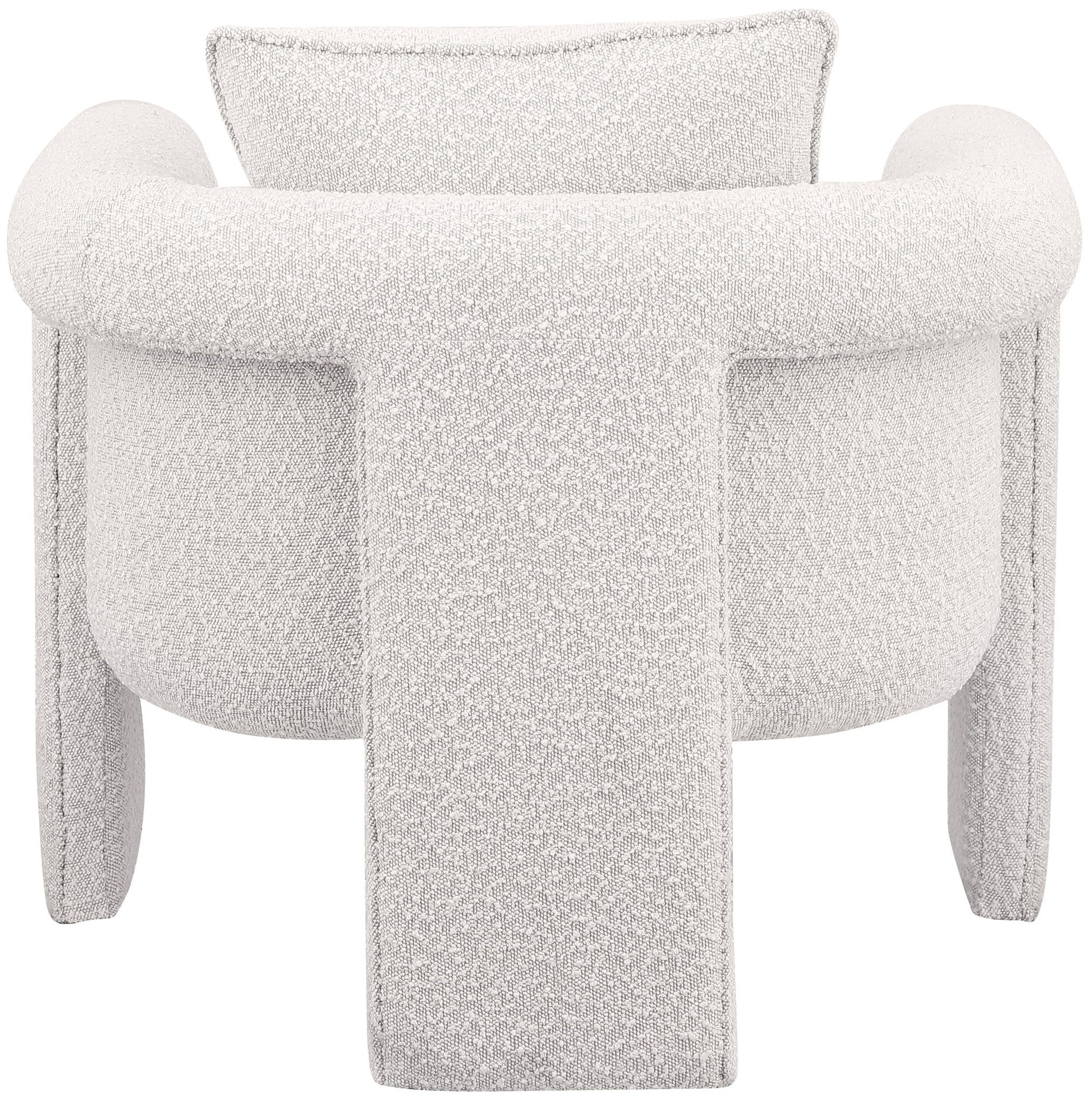 Provide family, friends, and guests with a comfortably stylish spot to sit with this Stylus boucle accent chair. Modern from top to bottom, this chair features a contemporary design that's well at home in your modern room. This rich boucle fabric upholstery is soft and yielding to the body yet durable and tough for everyday use. Plump cushions ensure total support and comfort for your body as you rest and relax.