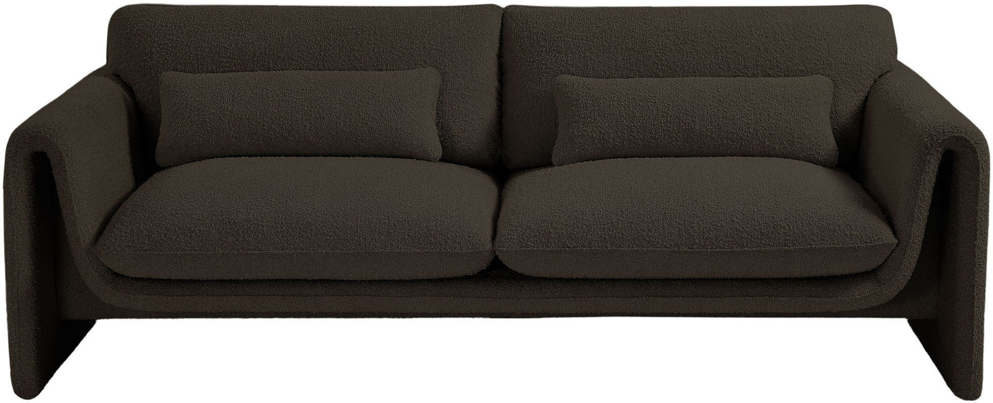 Impress family and guests alike with this Stylus boucle fabric sofa. This modish chair oozes contemporary panache with its curved arms and unexpected design elements. Thickly padded seat and back cushions cradle your body in supportive comfort while the rich boucle fabric caresses the skin and leaves you feeling relax and recharged. A wood frame ensures that the chair withstands the rigors of daily use without losing its lovely yet contemporary look.