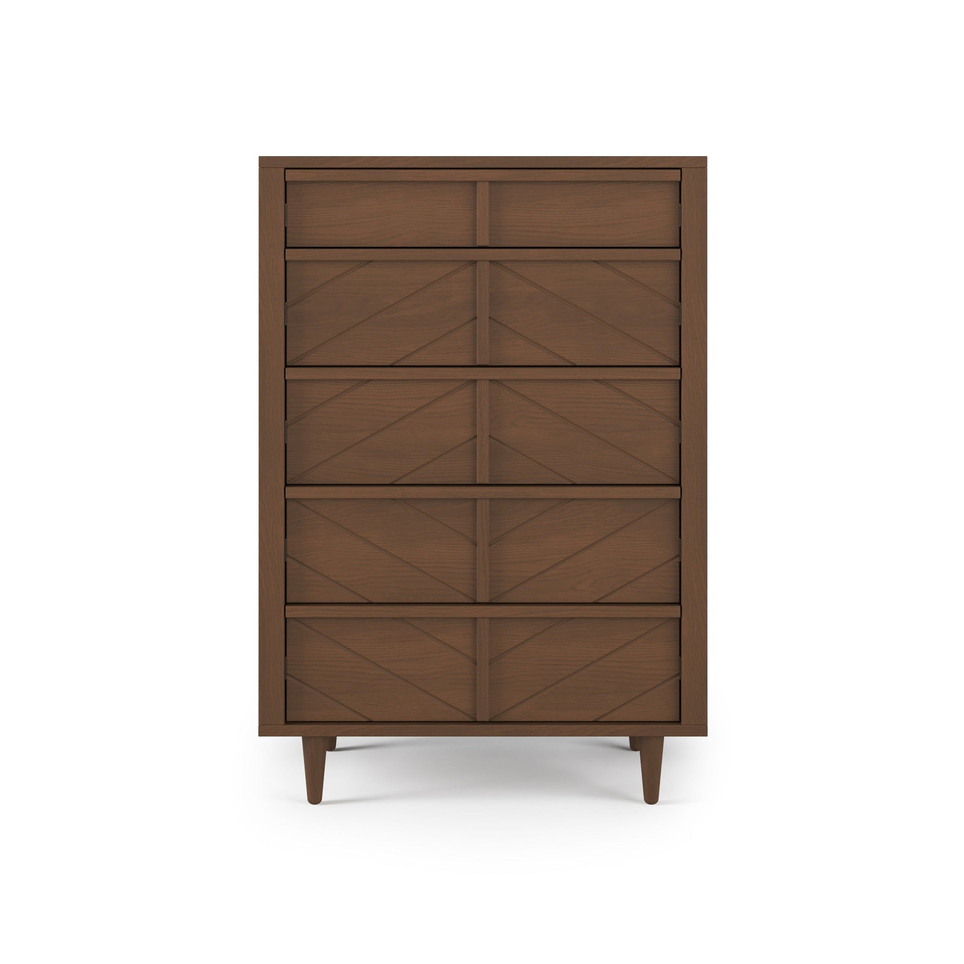 - Storage dresser and five-drawer chest feature smooth ball-bearing glides for easy access.