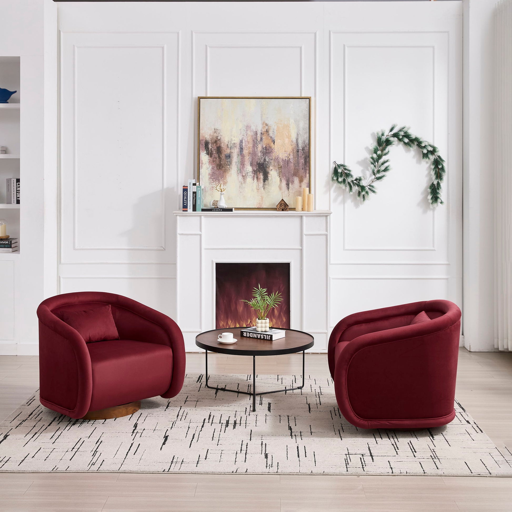 Swivel Barrel Chair, 360 Degree Rotating For Living Room - Wine Red