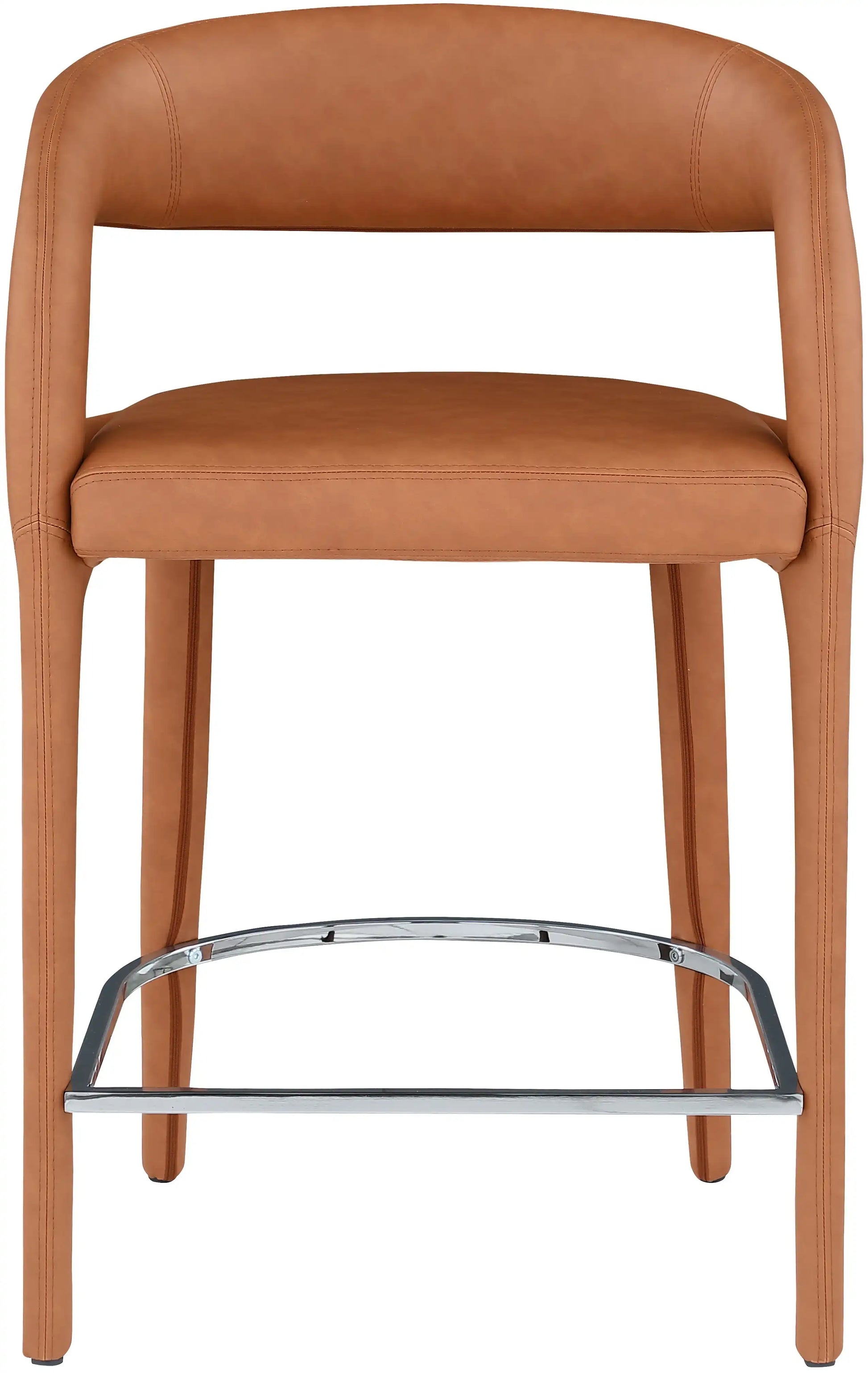 Modernize your home with this Sylvester cognac vegan leather stool. Featuring soft and durable cognac vegan leather upholstery, this stool offers you a comfortable and long-lasting place to sit while you dine. It's fully upholstered, giving it a solid look that is ideal for any contemporary home. Its rounded back provides upper back support, while its semi-open design makes a fashionable decorative statement that is sure to catch the eyes of anyone who joins you for dinner.